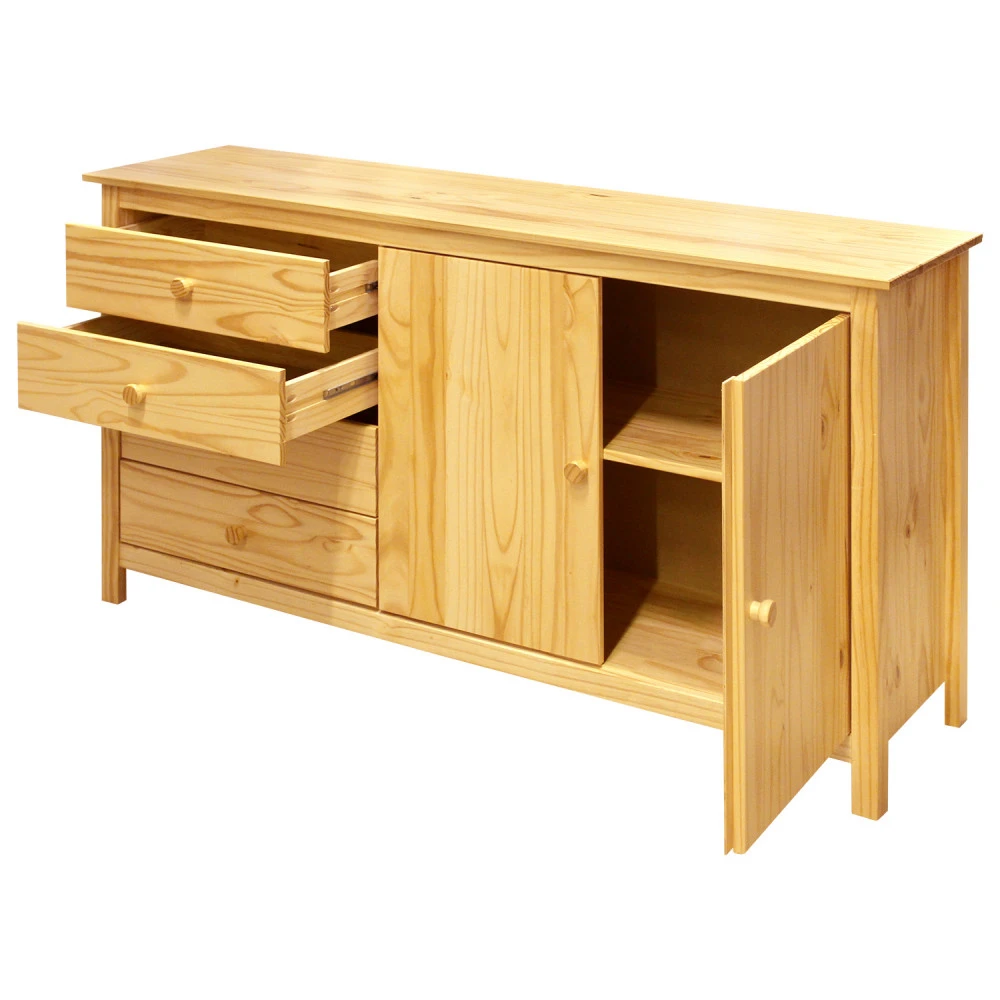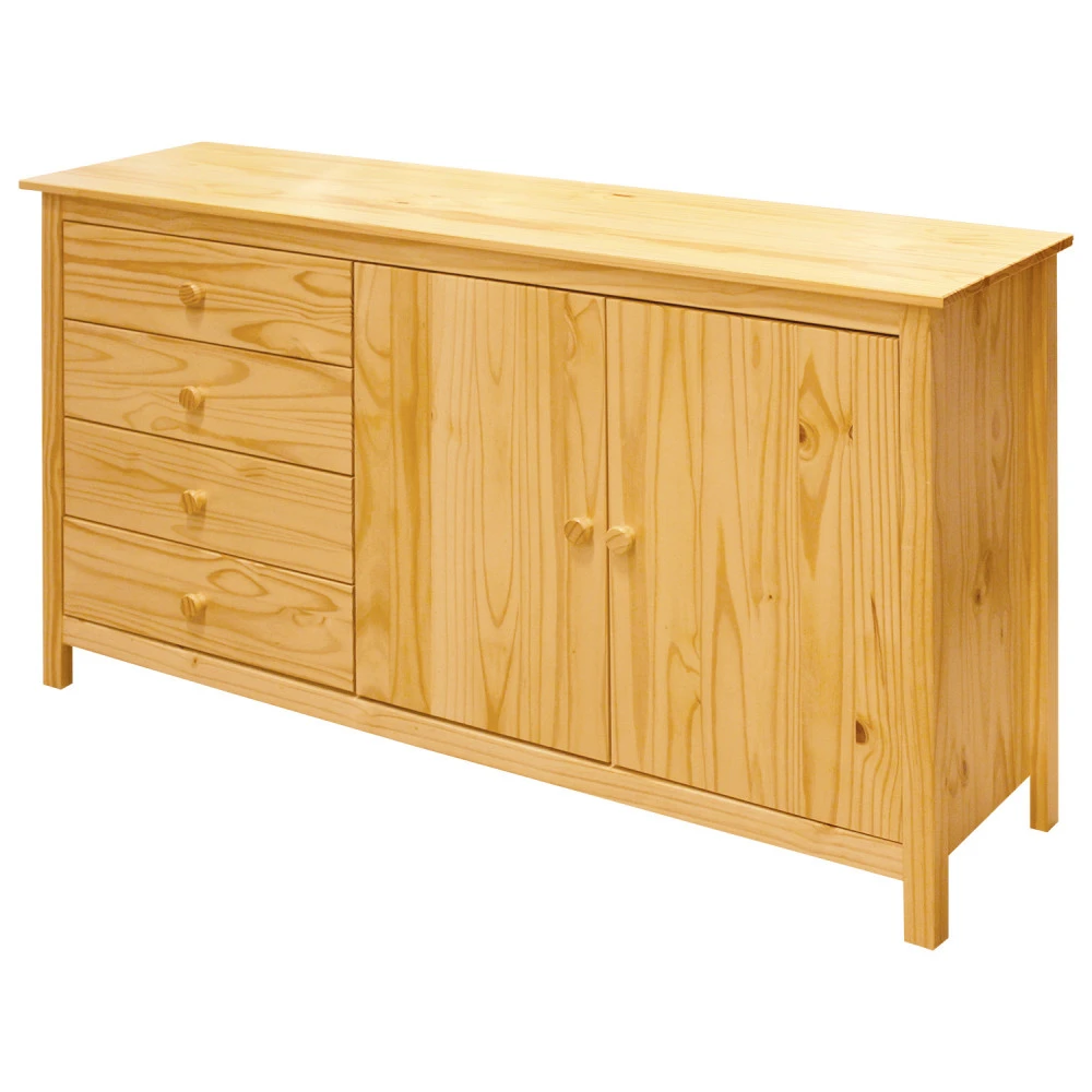 materiál masiv borovice, lakované provedení 4 zásuvky s kovovými pojezdy, 2 plné dveře, 1 police