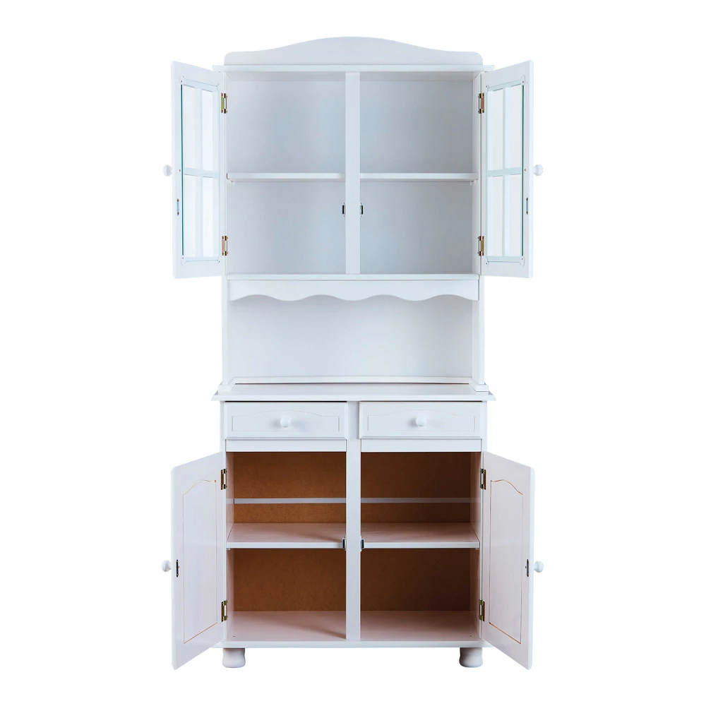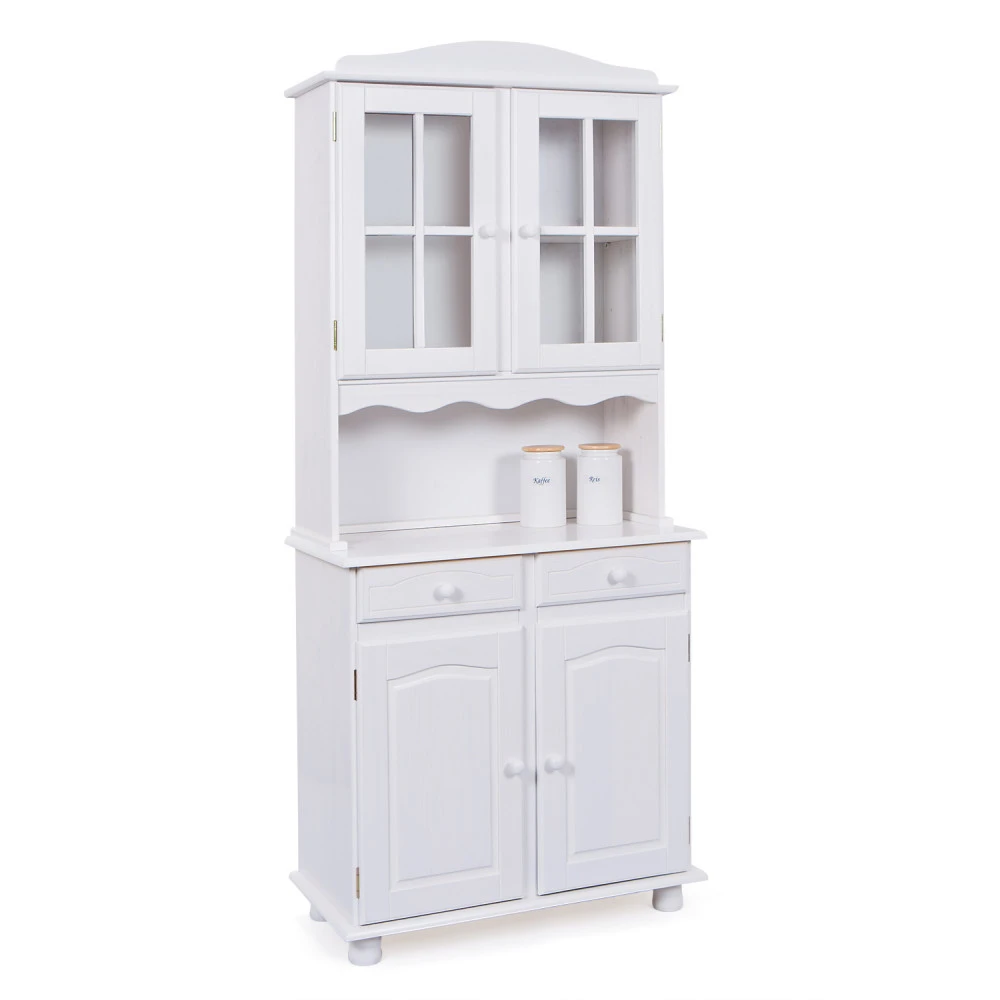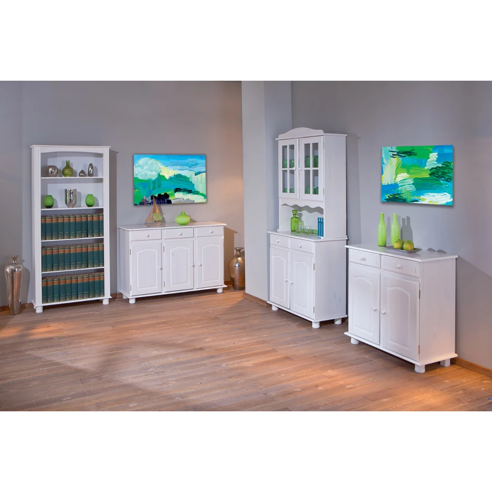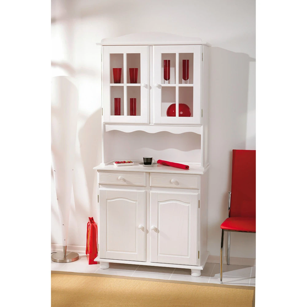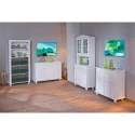 materiál masiv borovice, barevné provedení bílý lak v horní části 2 prosklená dvířka ve spodní části 2 plná dvířka, 2 zásuvky s kovovými pojezdy hloubka horní části 32 cm sestava příborníku LOVI ID20900802 a nástavce LOVI 8056B PAMINA, LOVI, ABACO, LIVIO, ALICANTE, VALENCIA, TOSCANA, SIENA