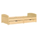 materiál masiv borovice, lakované provedení 2 zásuvky pojízdné na kolečkách jsou v ceně cena včetně roštu (dřevěný laťkový) bez matrace doporučený rozměr matrace 90 × 200 cm