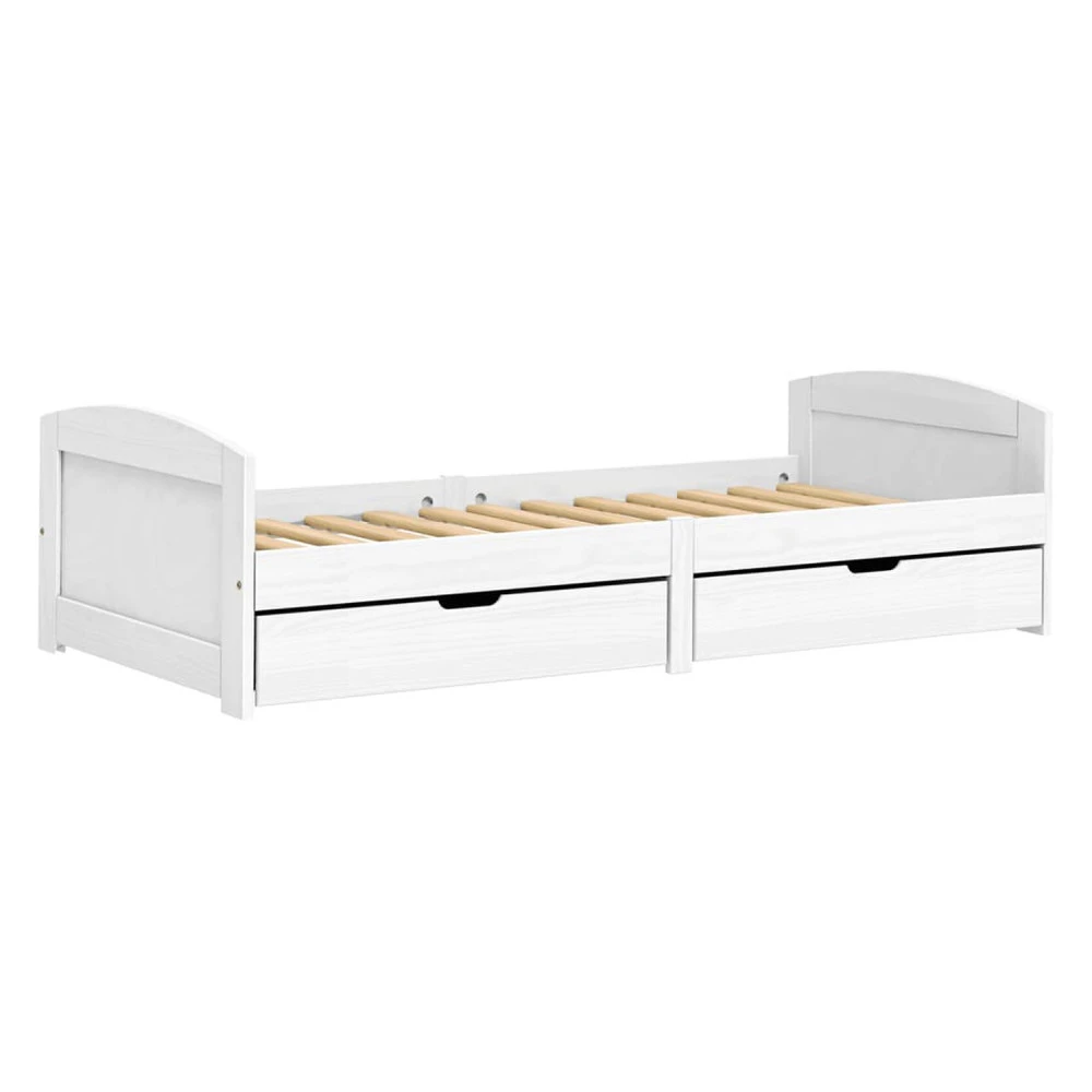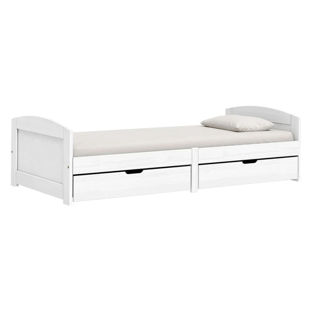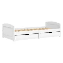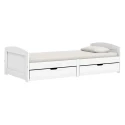 materiál masiv borovice, barevné provedení bílý lak 2 zásuvky pojízdné na kolečkách jsou v ceně cena včetně roštu (dřevěný laťkový) bez matrace doporučený rozměr matrace 90 × 200 cm