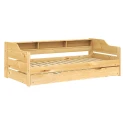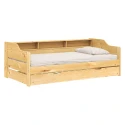 materiál masiv borovice, lakované provedení v zadní části otevřená police, v dolní části výsuvná přistýlka cena včetně roštů (dřevěné laťkové), matrace nejsou v ceně doporučený rozměr matrací 90 × 200 cm