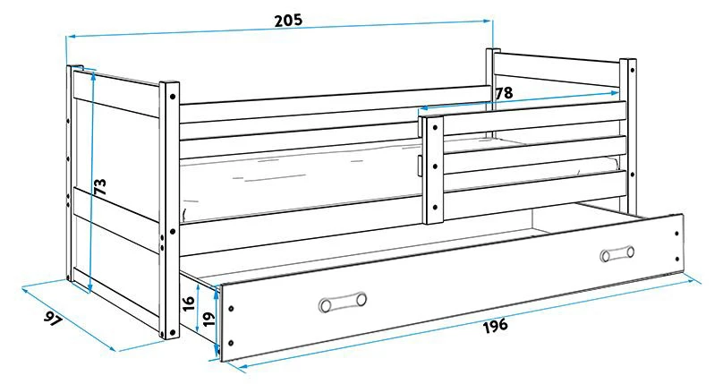 Pokud hledáš bezpečnou, odolnou a praktickou dětskou postel s moderním designem, model Riky je skvělou volbou pro každodenní spánek i dětské hry.