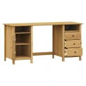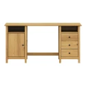 materiál masiv borovice voskovaná v medovém odstínu kovové úchytky v barevném provedení černěná mosaz 2 otevřené police, 1 dvířka a 3 zásuvky s kovovými pojezdy