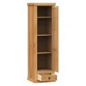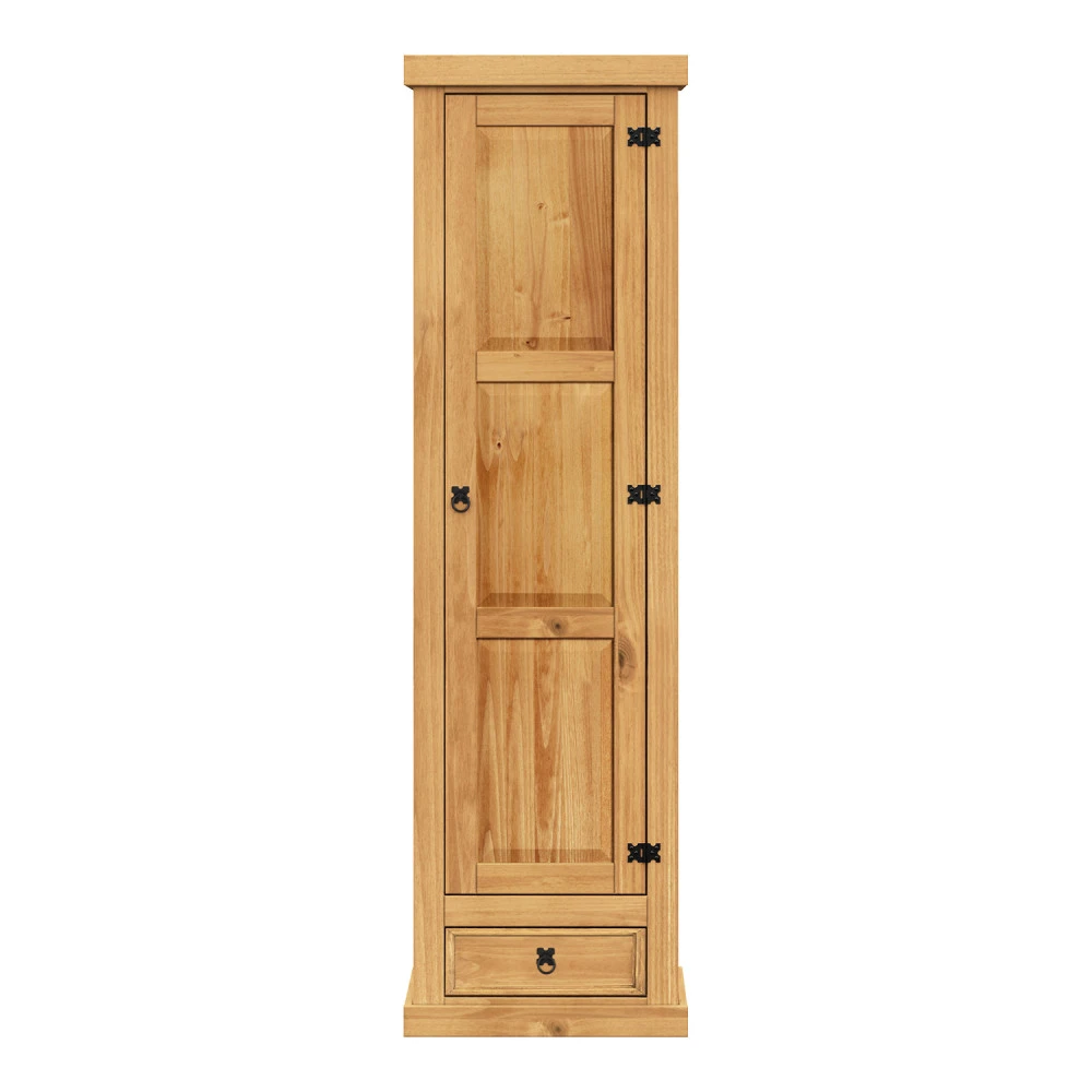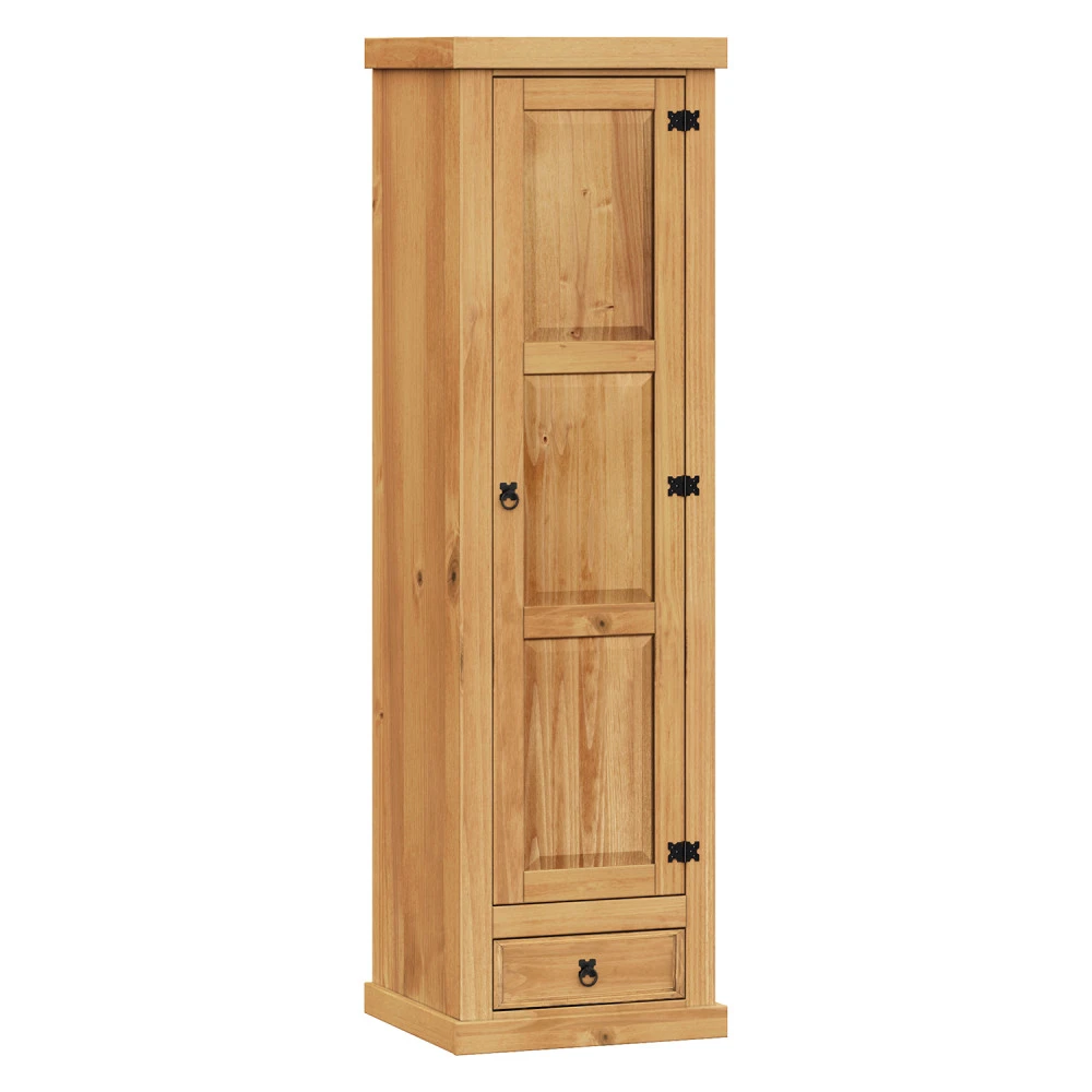 materiál masiv borovice voskovaná v medovém odstínu 1 zásuvka, 1 dveře, kovové ozdobné úchytky 3 police z toho 2 variabilní součást sestavy Corona