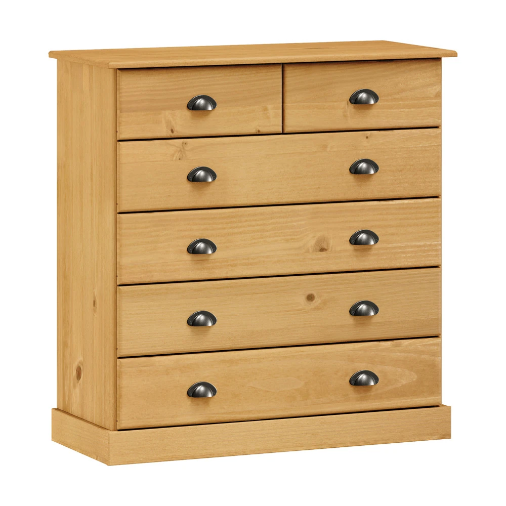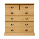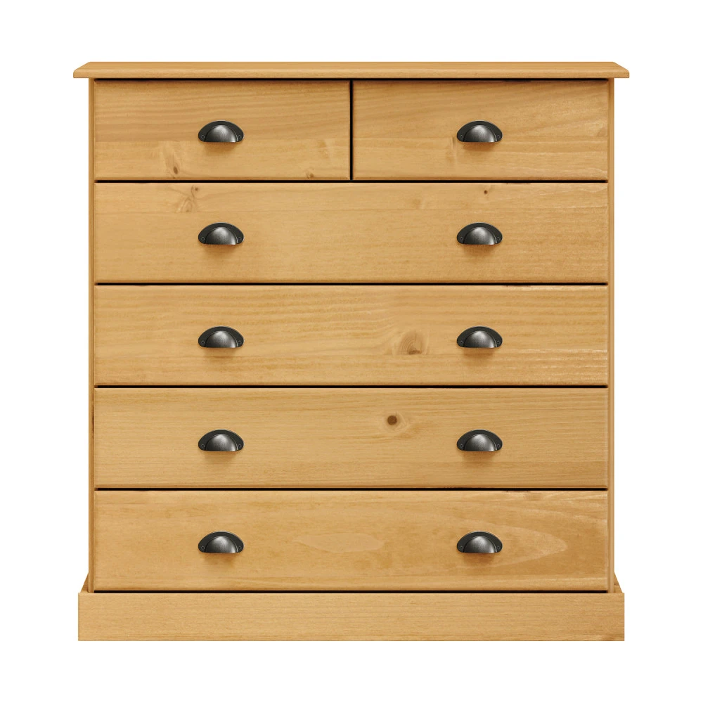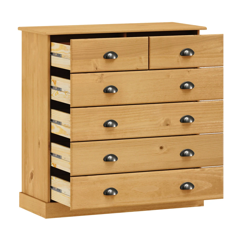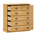 materiál masiv borovice voskovaná v medovém odstínu 4 větší a 2 menší zásuvky s kovovými úchytkami a pojezdy