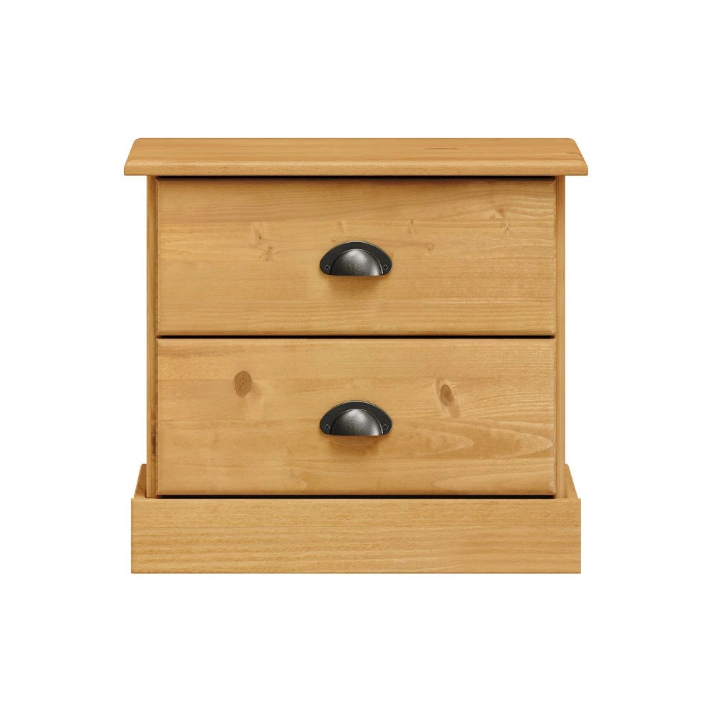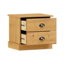 materiál masiv borovice voskovaná v medovém odstínu 2 zásuvky s kovovými úchytkami a pojezdy