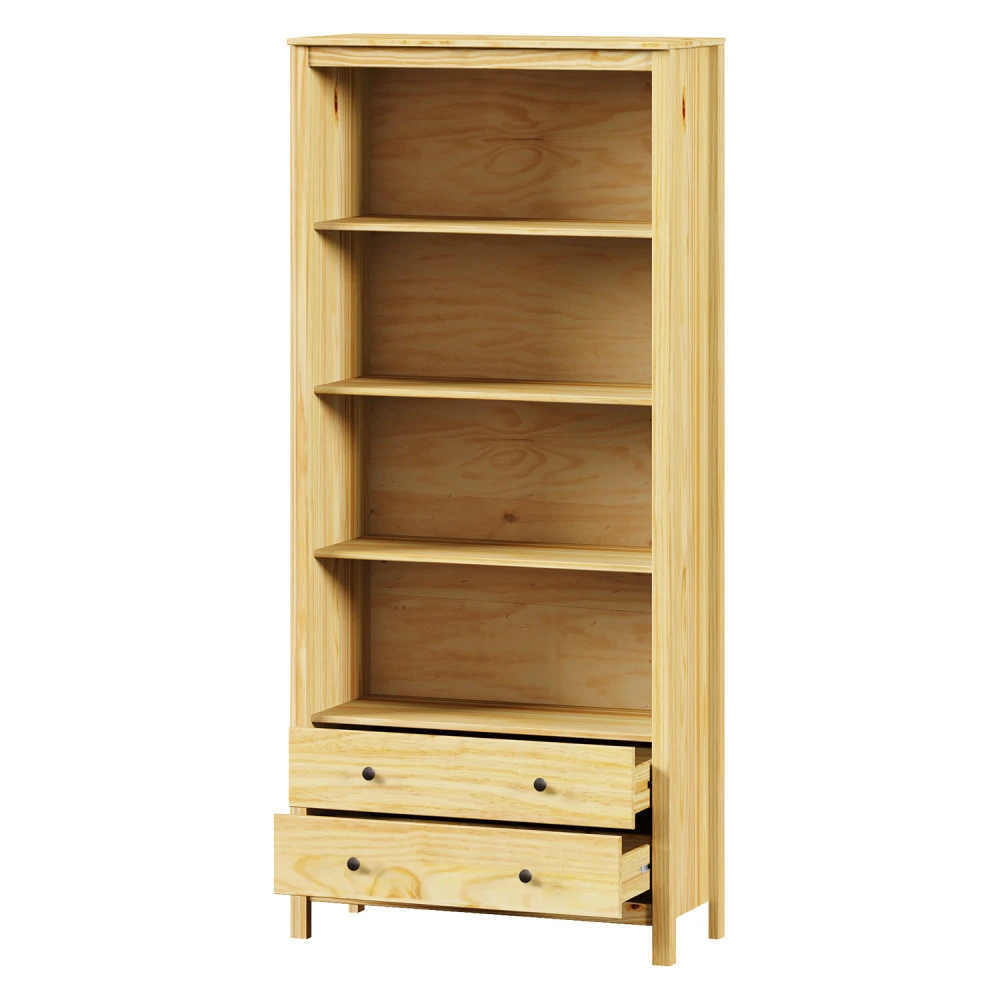 materiál masiv borovice, lakované provedení kovové úchytky tři police, dvě zásuvky s kovovými pojezdy