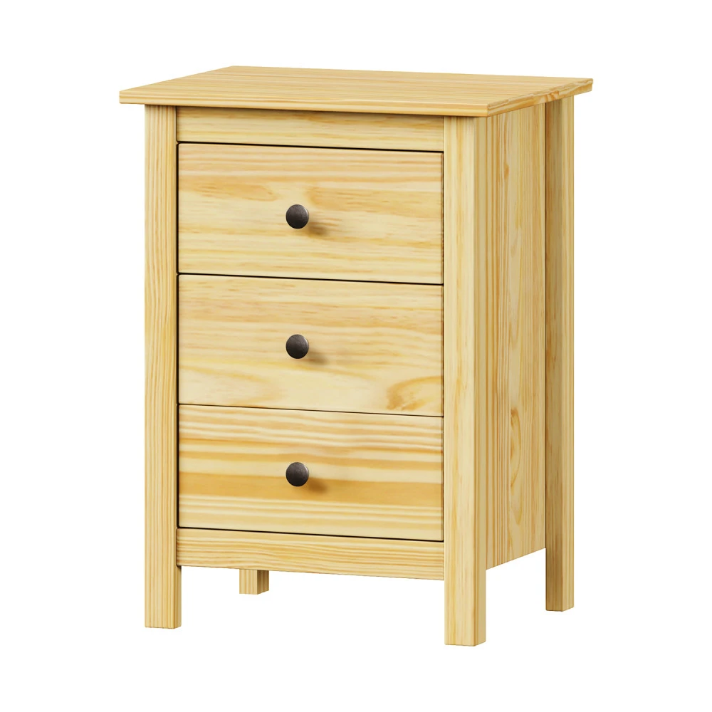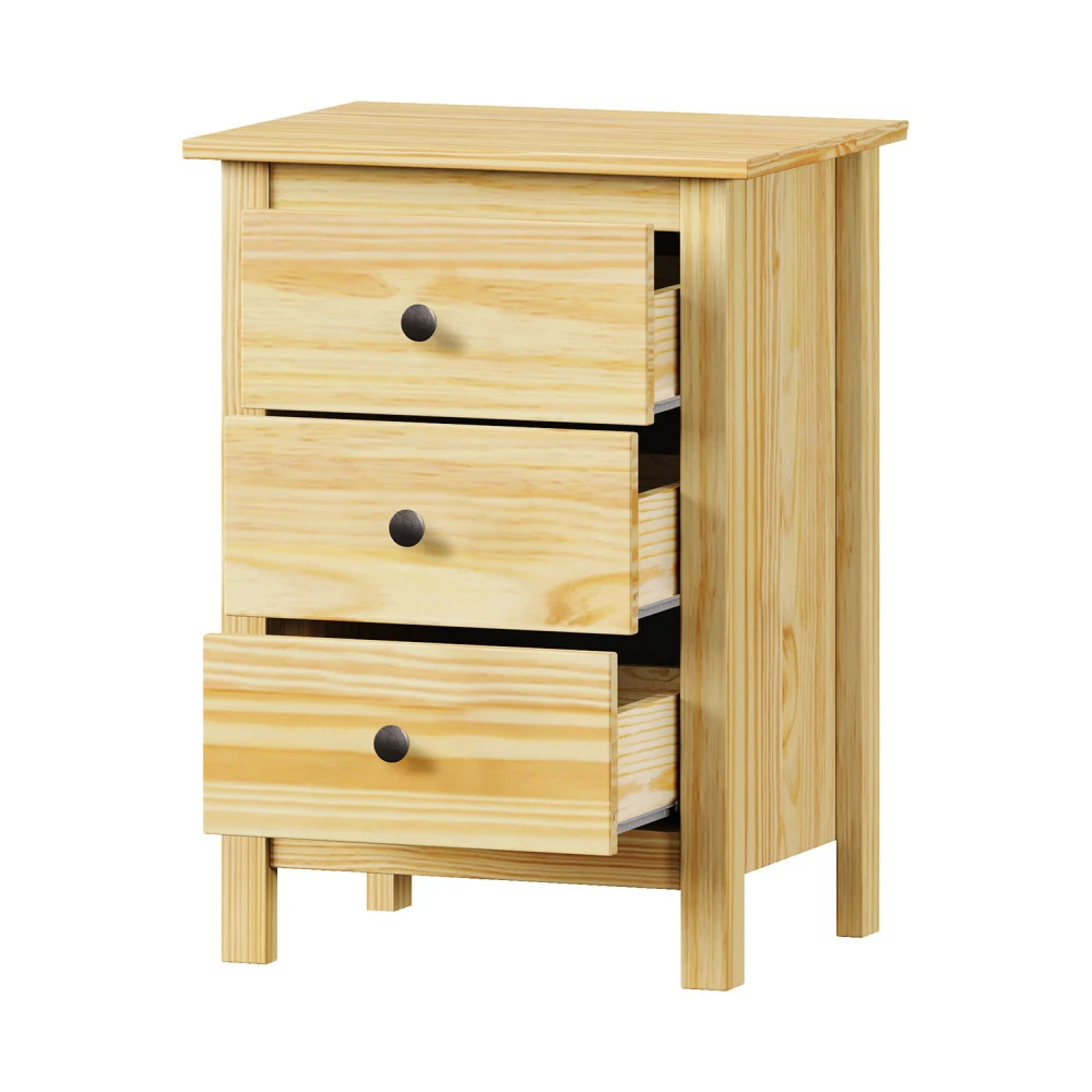 materiál masiv borovice, lakované provedení kovové úchytky tři zásuvky s kovovými pojezdy