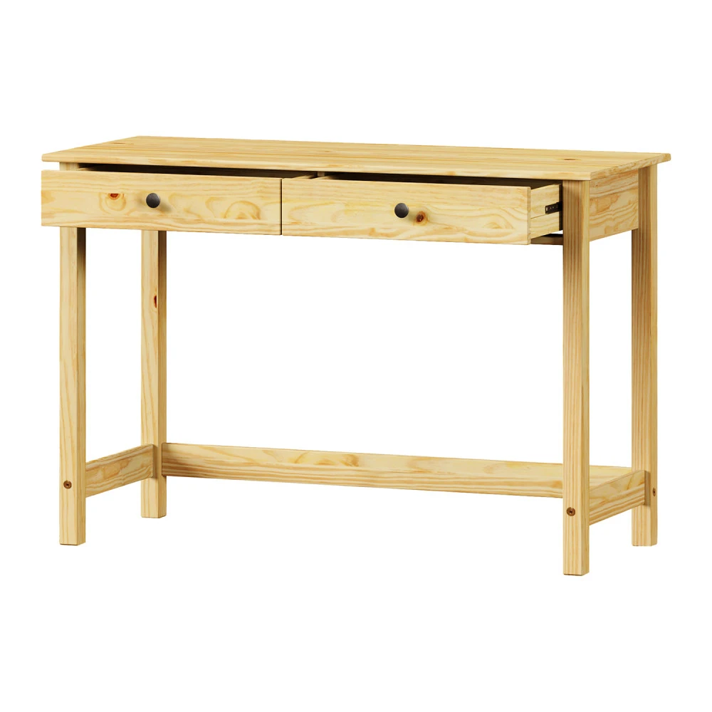materiál masiv borovice, lakované provedení kovové úchytky dvě zásuvky s kovovými pojezdy
