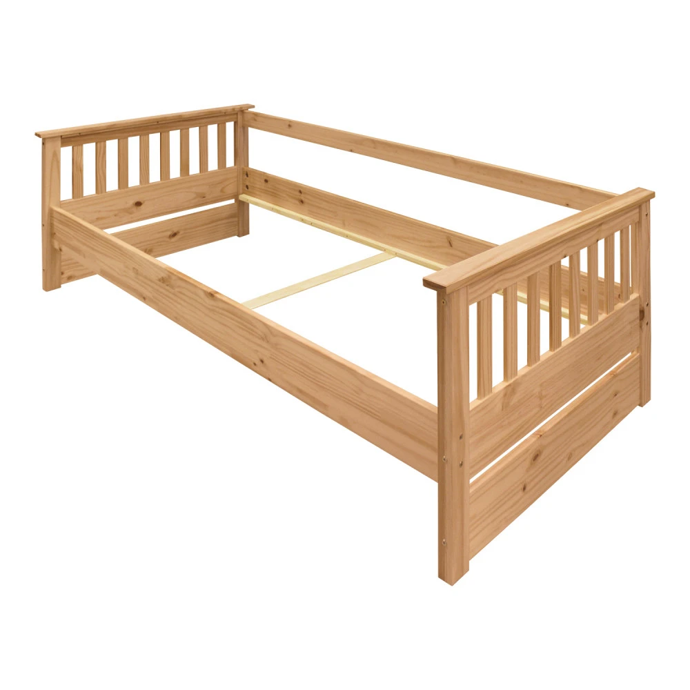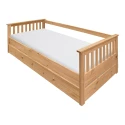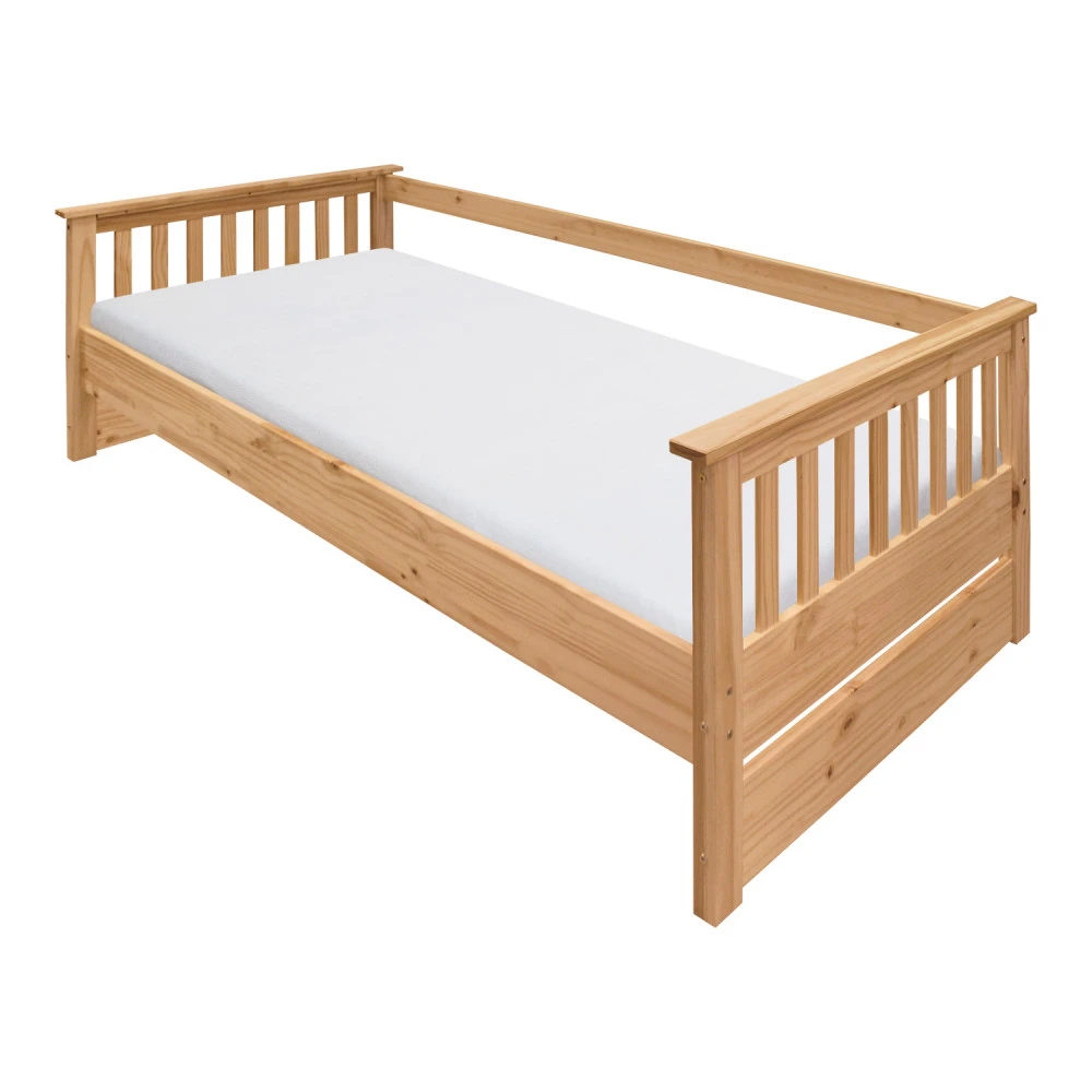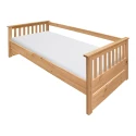 materiál masiv borovice voskovaná v medovém odstínu výška čela 70 cm, výška sedu 42 cm, cena bez roštu a matrace minimální doporučená výška matrace 15 cm doporučený rozměr matrace 90 × 200 cm a rošt R1 k pohovce možno dokoupit výsuvnou přistýlku TORINO 8086V