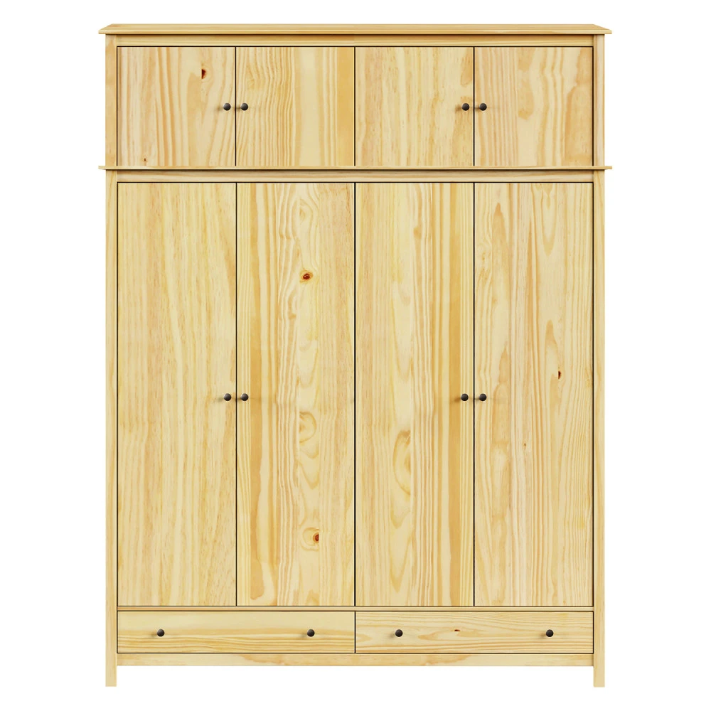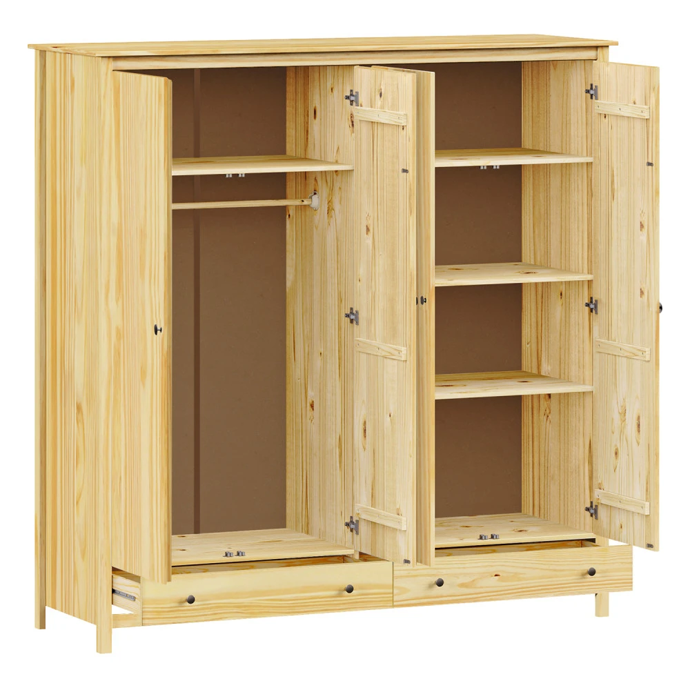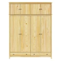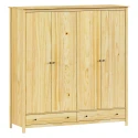 materiál masiv borovice, lakované provedení kovové úchytky prostor dělený na poloviny v levé polovině šatní tyč a police na klobouky v pravé polovině 3 police ve spodní části 2 zásuvky s kovovými pojezdy doporučený nástavec 8168K