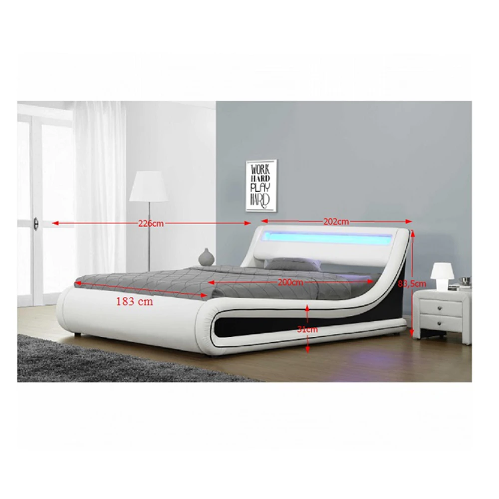 Dodej své ložnici luxusní vzhled s moderní manželskou postelí z ekokůže, která spojuje eleganci, funkčnost a pohodlí. Kombinace bílé a černé barvy působí výrazně a stylově, zatímco RGB LED osvětlení v čele postele umožňuje měnit barvy podle nálady – od jemného podsvícení až po efektní světelné tóny pro večerní relax.