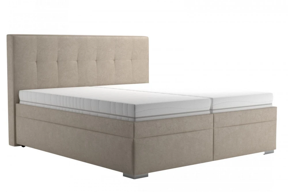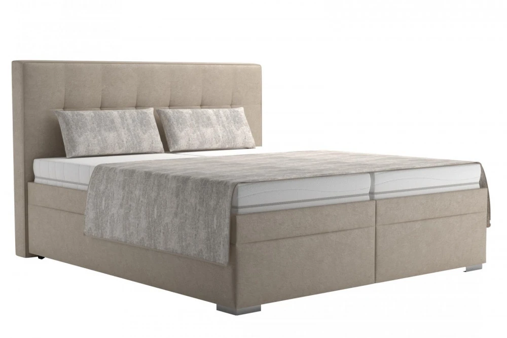 V ceně postele je dekorativní přehoz a dva polštáře, které doplňují elegantní vzhled lůžka a dodávají celé ložnici příjemně útulnou atmosféru. Matrace není součástí nabídky, doporučujeme proto dokoupit dva kusy matrací 90 × 200 cm nebo jednu společnou matraci v rozměru 180 × 200 cm s výškou přibližně 20 cm. Tento rozměr je ideální pro pohodlný spánek dvou osob. Postel je dostupná také v menším rozměru 160 × 200 cm.