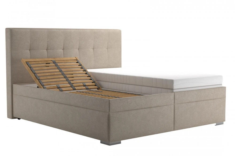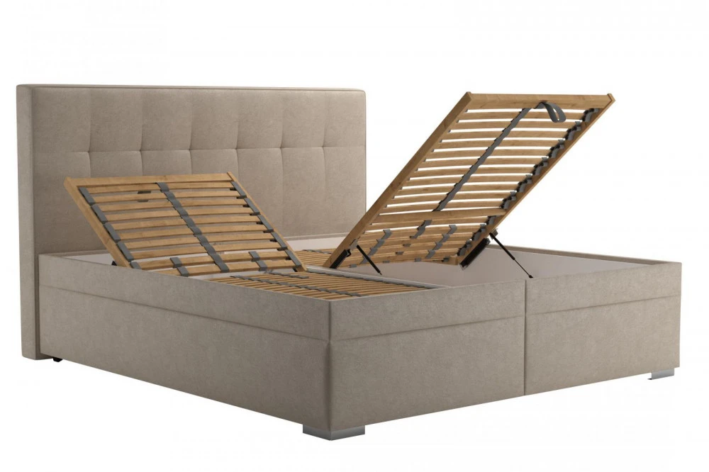 Elegantní čalouněná postel Tristan s úložným prostorem a polohovacími rošty