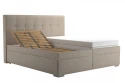 Základem postele jsou dva lamelové rošty s mechanickým polohováním, které umožňují 7 poloh pro hlavu a 1 polohu pro nohy. Tato variabilita přináší pohodlí při čtení, relaxaci nebo sledování televize. Každý rošt se skládá z 28 lamel uložených ve výkyvných kaučukových pouzdrech, které zajišťují pružnost, tichý chod a odolnost. V bederní části lze nastavit tuhost lamel, takže si můžete přizpůsobit tvrdost podle svých potřeb. Popruh proti přetížení navíc zvyšuje stabilitu konstrukce a chrání rošt při větším zatížení. Součástí postele je také praktický úložný prostor, který se otevírá od nohou pomocí plynových pístů. Ty zaručují hladký, bezpečný a nenáročný chod při otevírání i zavírání. Do úložného prostoru snadno uložíte lůžkoviny, deky nebo sezónní oblečení.