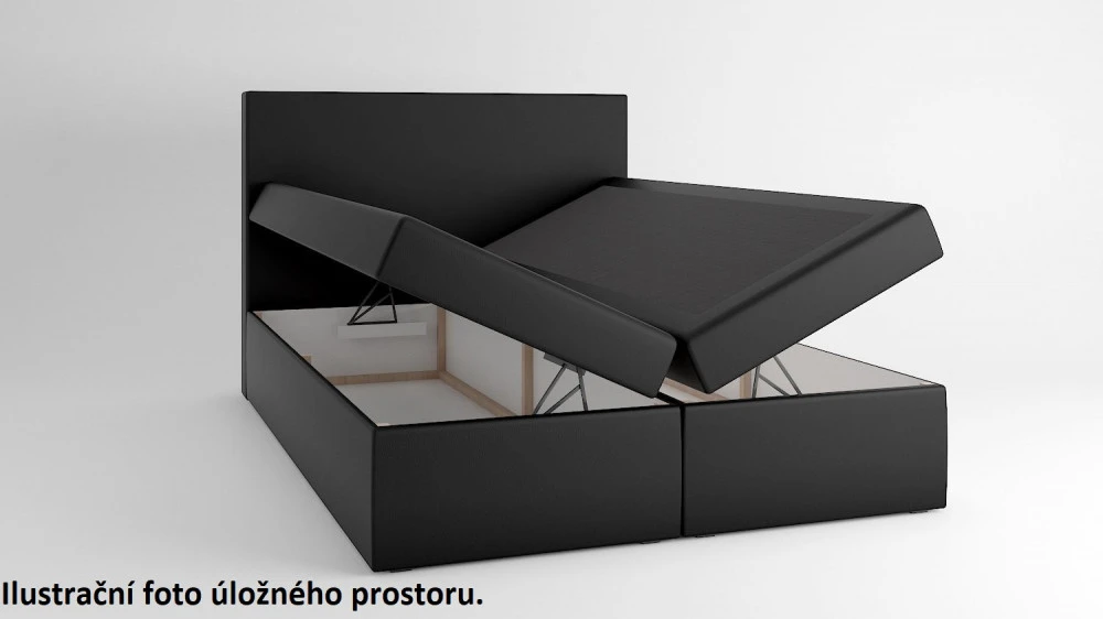 V čalouněném spodním boxu najdete prostorný úložný prostor. Tato postel s úložným prostorem je skvělou volbou pro ty, kteří potřebují dodatečné místo k uložení nejen ložního prádla a sezónního oblečení. Přístup k úložnému prostoru je snadný - jednoduše zvedněte matraci z boku postele. Matrace je k úložnému prostoru upevněna pružinovými mechanismy, což usnadňuje otevírání.