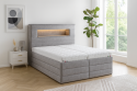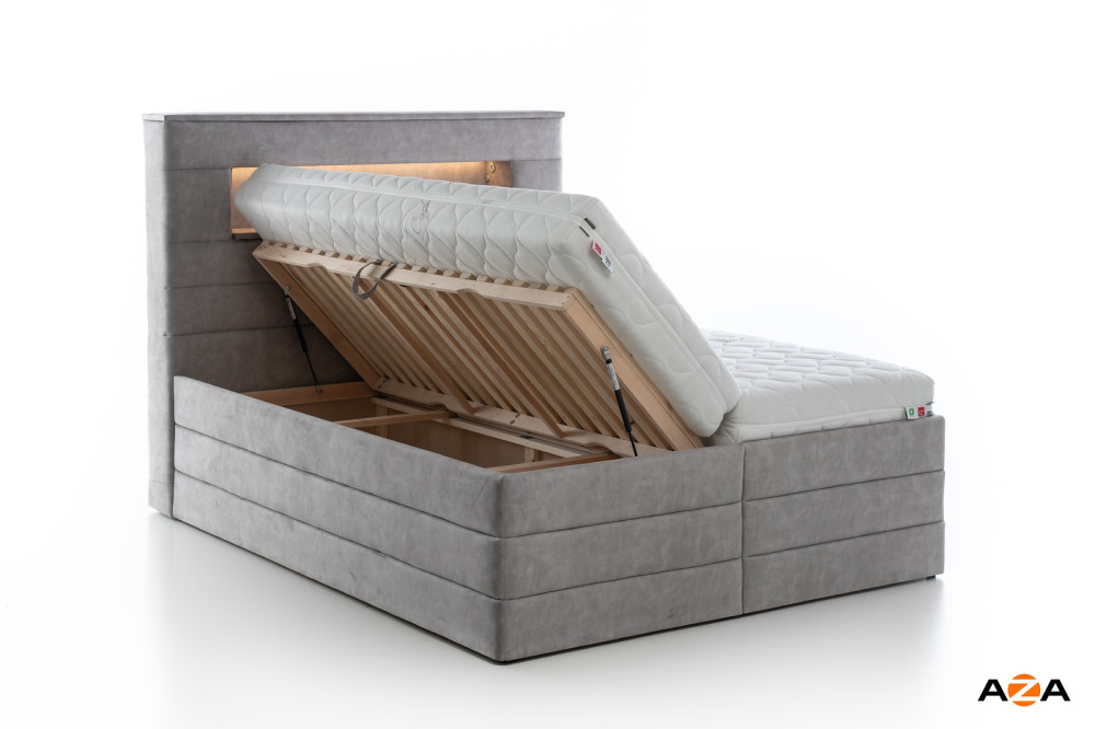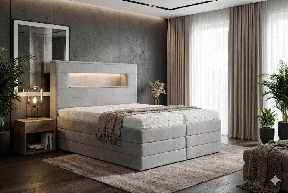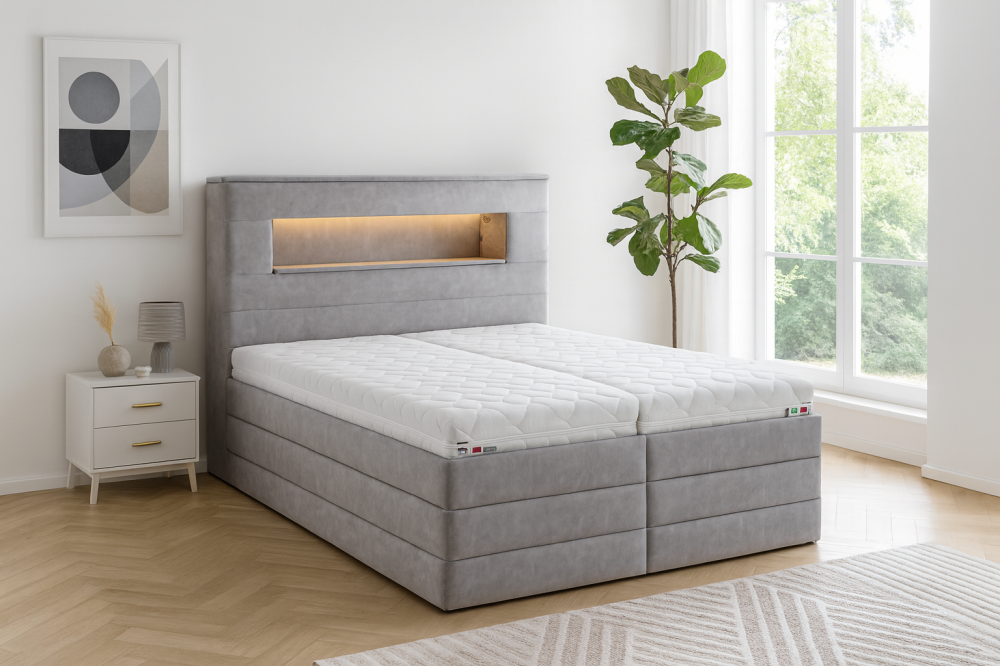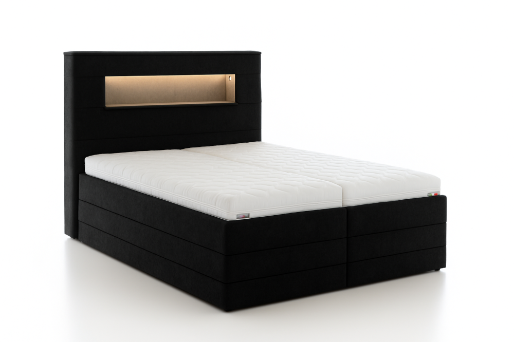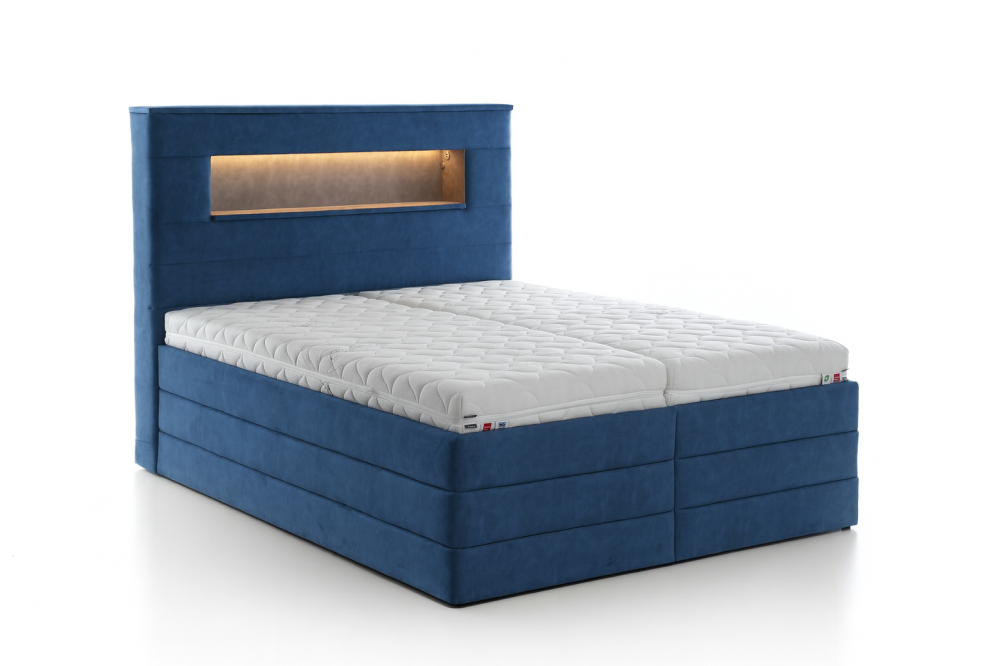 Čelo postele je vybaveno jemným LED podsvícením, které vytváří příjemnou atmosféru pro večerní relax. Vypínač LED osvětlení je standardně umístěn na pravé straně při pohledu na postel, ale po dohodě jej lze umístit i na jiné místo podle vašich preferencí.