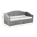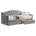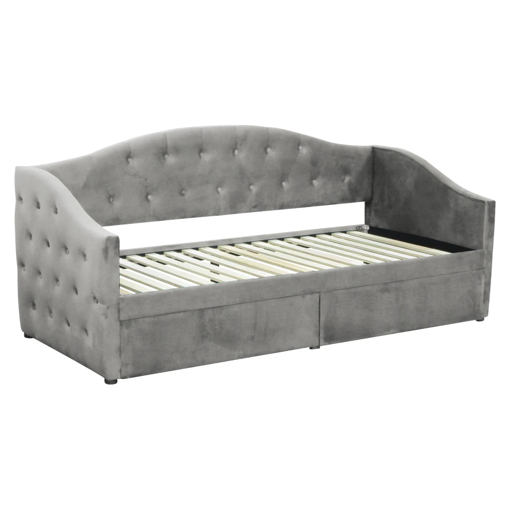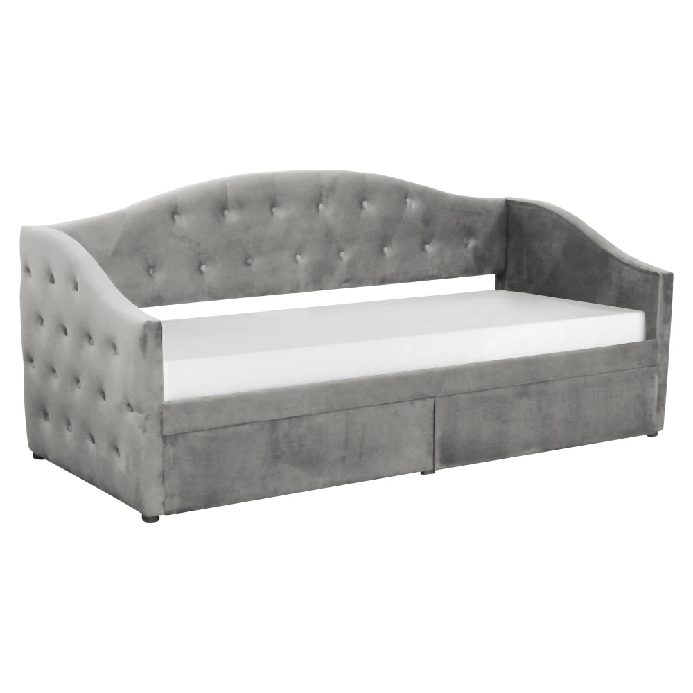 Elegantní čalouněná postel v šedém sametu přináší dokonalé spojení pohodlí, funkčnosti a moderního designu. Látka Velvet působí hebce a luxusně, zatímco dekorativně prošívané čelo i bočnice dodávají posteli jemnou eleganci, která se hodí do každé ložnice či studentského pokoje. Kvalitní konstrukce z DTD, MDF a laminované dýhy zajišťuje pevnost a stabilitu celé postele. Praktický úložný prostor tvoří dva výsuvné šuplíky (vnitřní rozměr 37×91,4×14,8 cm, nosnost 5 kg každý), které poskytují ideální místo pro uložení lůžkovin nebo sezónního oblečení.