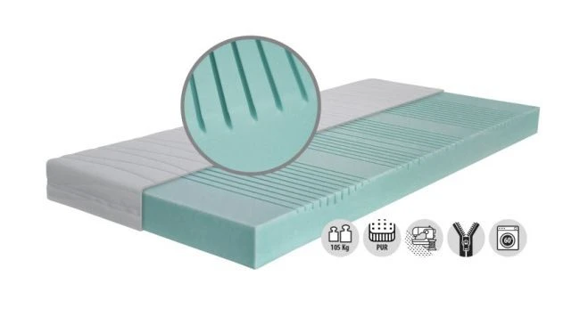 - matrace: elastická PUR pěna, strukturovaný povrch pro lepší odvětrávání