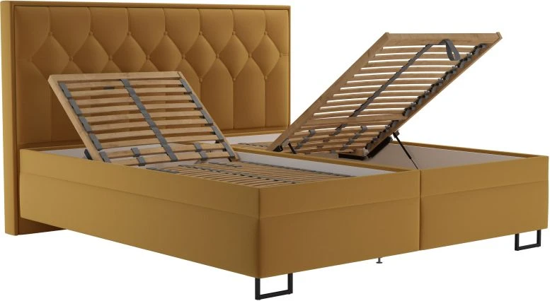 Postel je vybavena praktickým úložným prostorem, který je přístupný od nohou postele pomocí plynových pístů. Tento systém umožňuje lehké, plynulé a bezpečné otevírání, takže máte vždy po ruce místo pro lůžkoviny, polštáře či sezónní textilie.