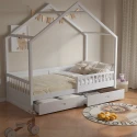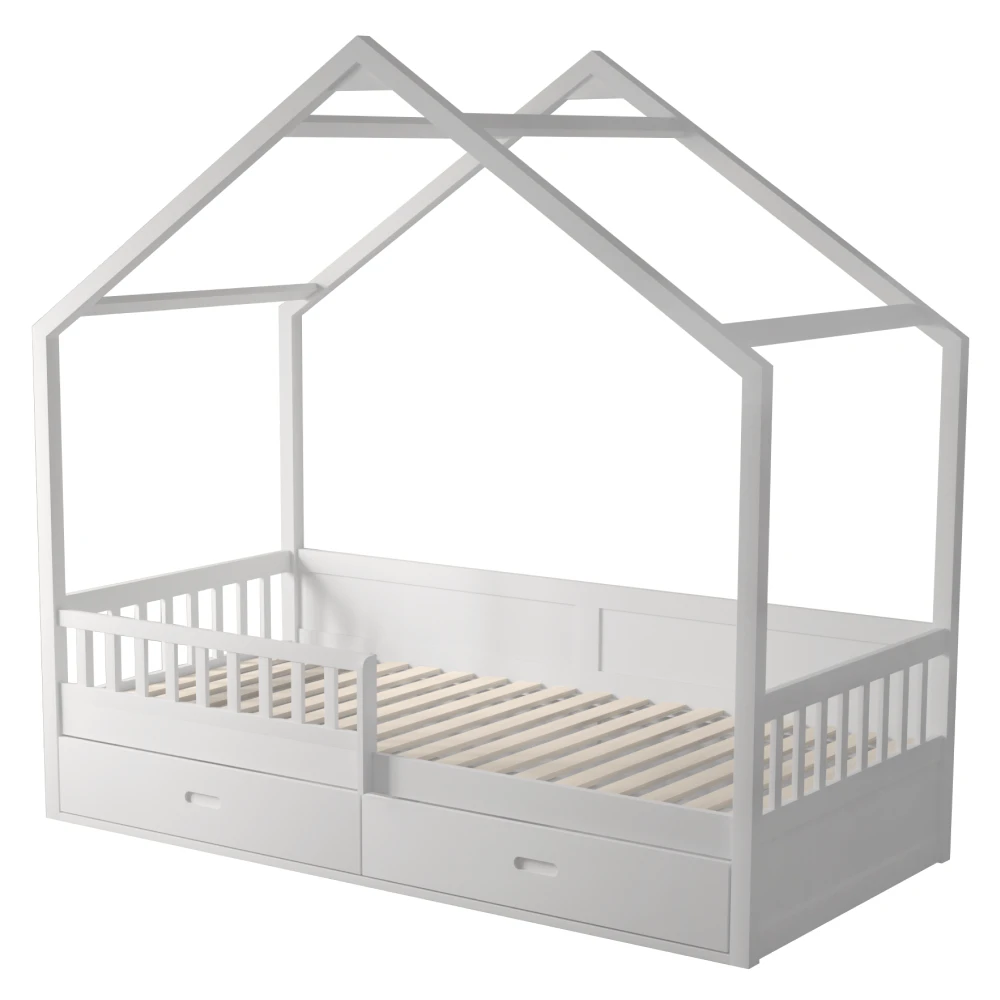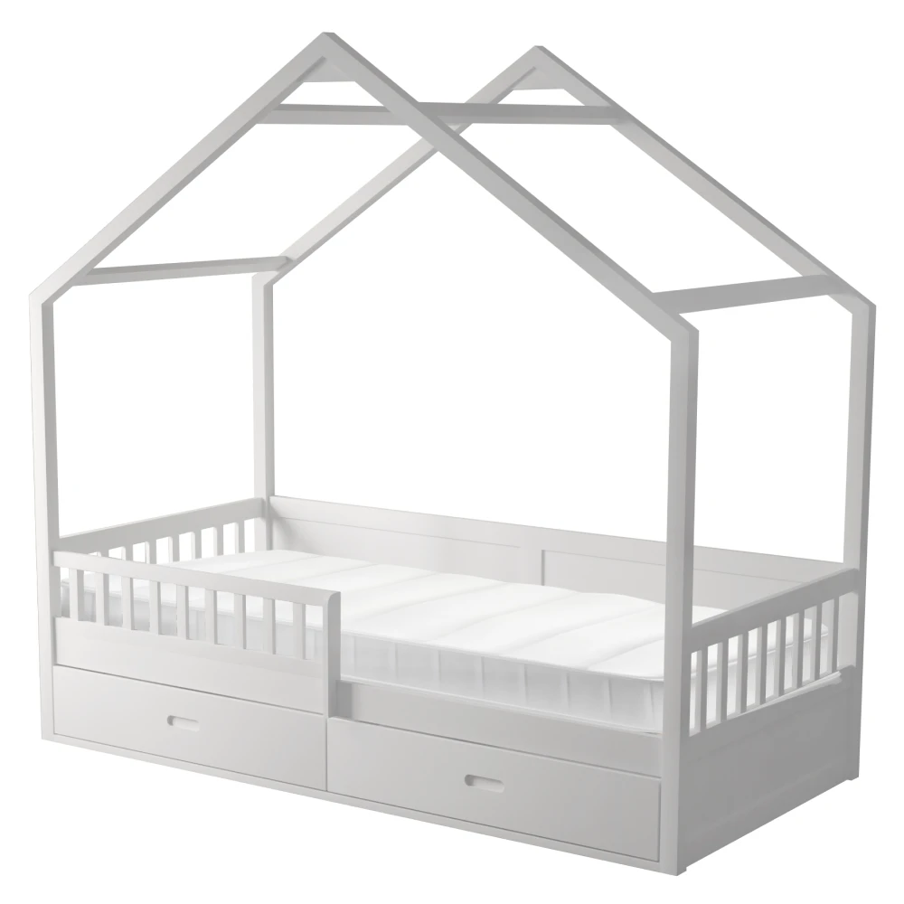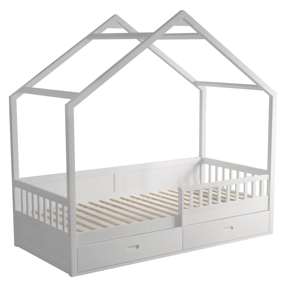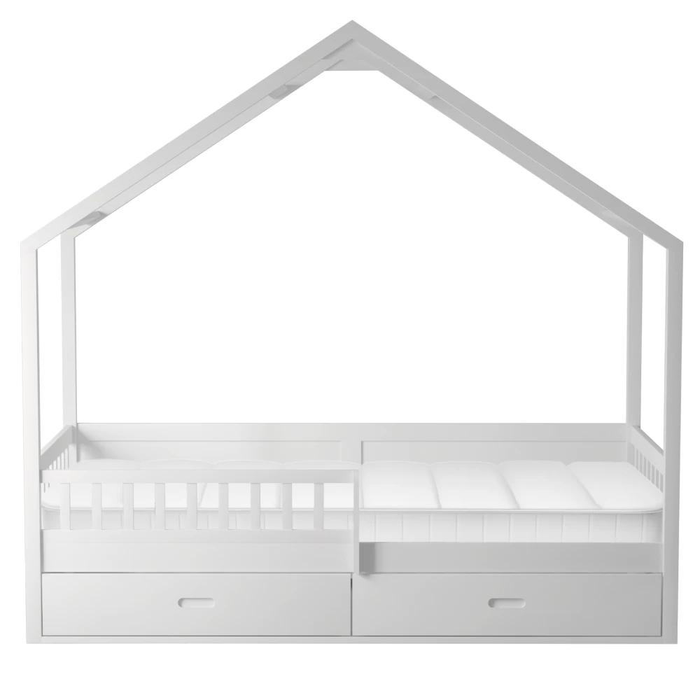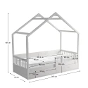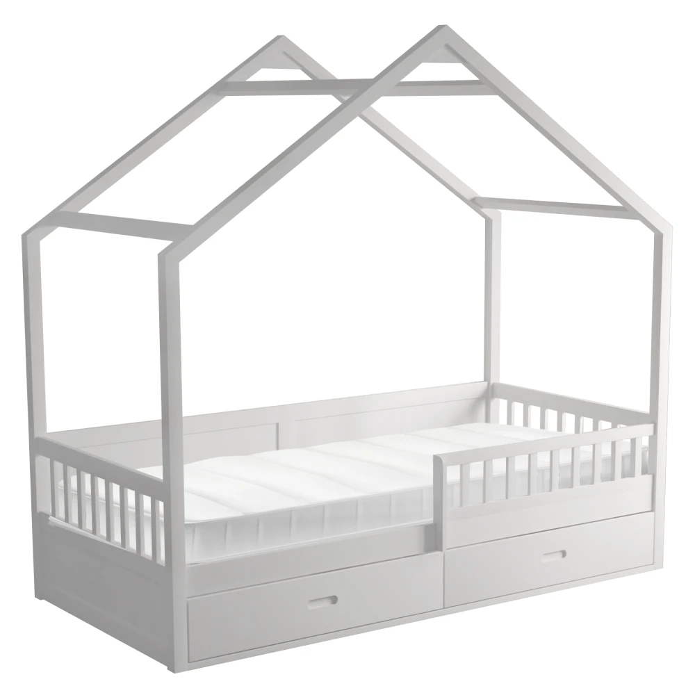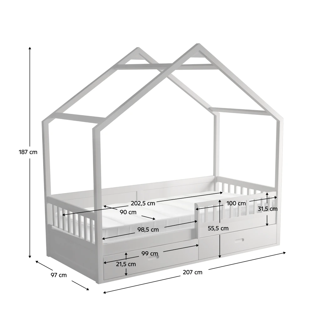 Proměňte dětský pokoj v útulné a hravé místo s touto postelí ve tvaru domečku z masivního borovicového dřeva. Její čistě bílá barva působí jemně a elegantně, takže krásně zapadne do každého interiéru – od moderního až po skandinávský styl. Díky svému designu se stane nejen postelí, ale i oblíbeným místem pro hraní a odpočinek.
