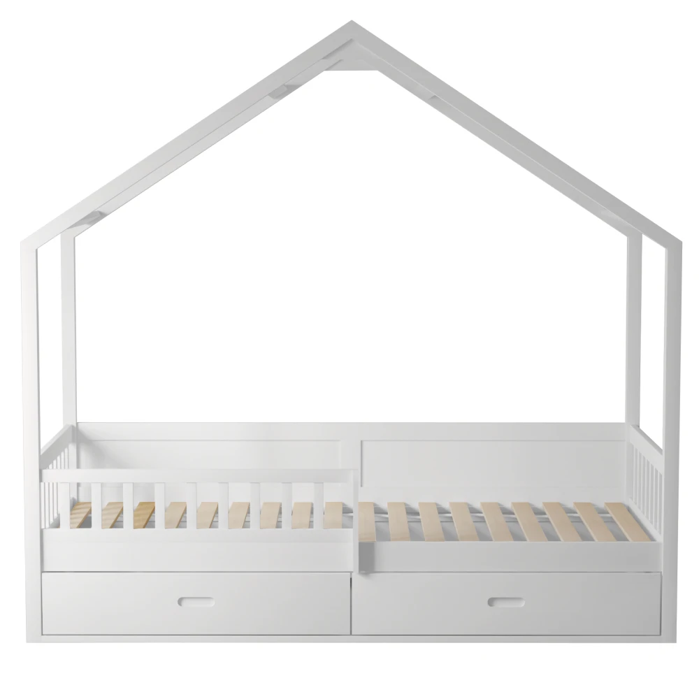 Dětská postel ve tvaru domečku s úložným prostorem – bílá, masiv borovice