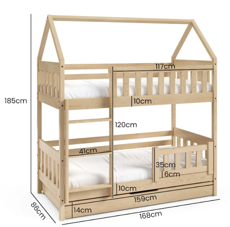 Patrová ostel ve tvaru domečku CLAUDI o rozměrech 80 x 160 cm je