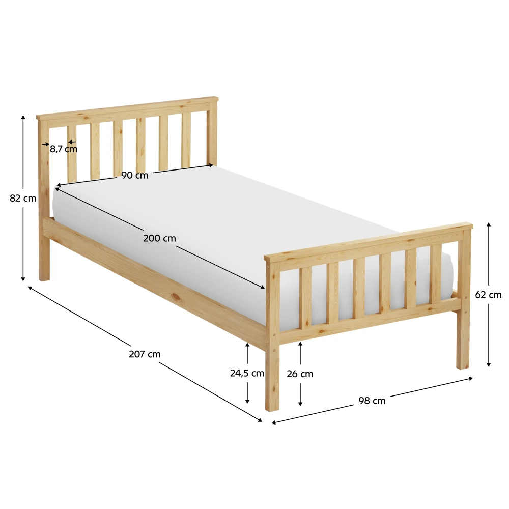 Jednoduchá a nadčasová postel z masivního borového dřeva v přírodní barvě je ideální volbou do dětského, studentského i hostinského pokoje. Díky svému minimalistickému designu se snadno přizpůsobí jakémukoliv interiéru a vytvoří příjemnou, útulnou atmosféru.