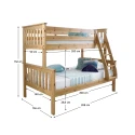 Postel nabízí dvě spací plochy různých velikostí – horní lůžko 90×200 cm a spodní 140×200 cm, což umožňuje pohodlné spaní až pro tři osoby. Díky robustnímu zpracování s tloušťkou materiálu 20 mm a nohami o rozměru 30×70 mm postel poskytuje stabilitu, bezpečnost a dlouhou životnost.