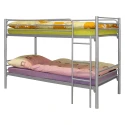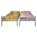 kovová konstrukce, barevné provedení stříbrná nohy trubky o průměru 50 mm možnost rozložení na dvě stejné postele, nosnost jedné postele 140 kg cena bez matrace, ale včetně kovových roštů doporučený rozměr matrace 90 × 200 cm, maximální výška matrace 11 cm