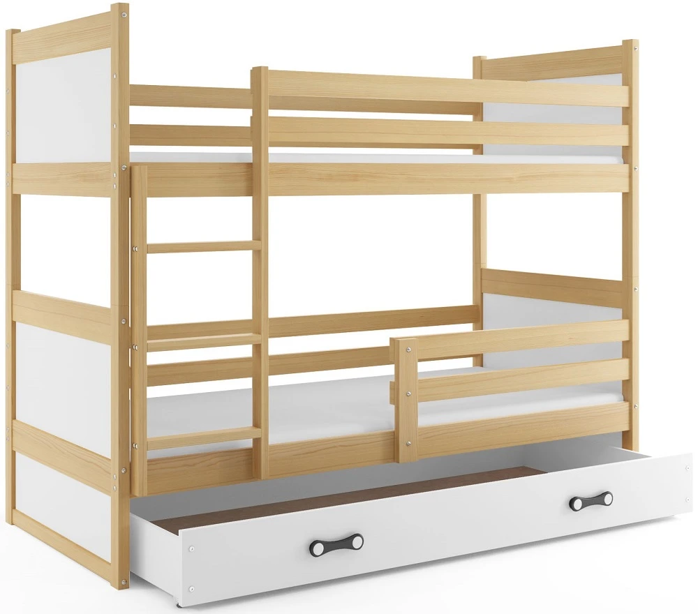 Dětská patrová postel Riky je ideálním řešením pro rodiče, kteří chtějí do dětského pokoje přinést kvalitu, funkčnost a moderní design. Je vyrobena z masivního borovicového dřeva v kombinaci s barevnými MDF panely, které posteli dodávají svěží a hravý vzhled.
