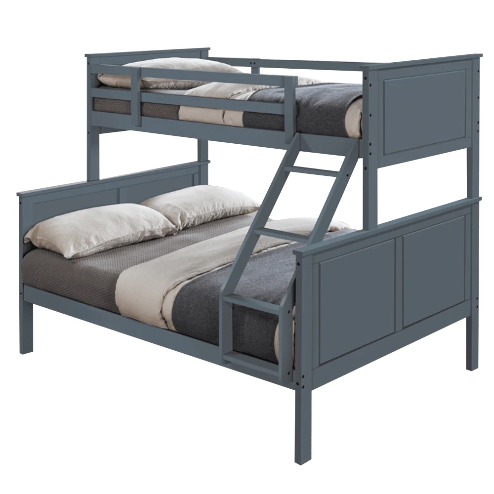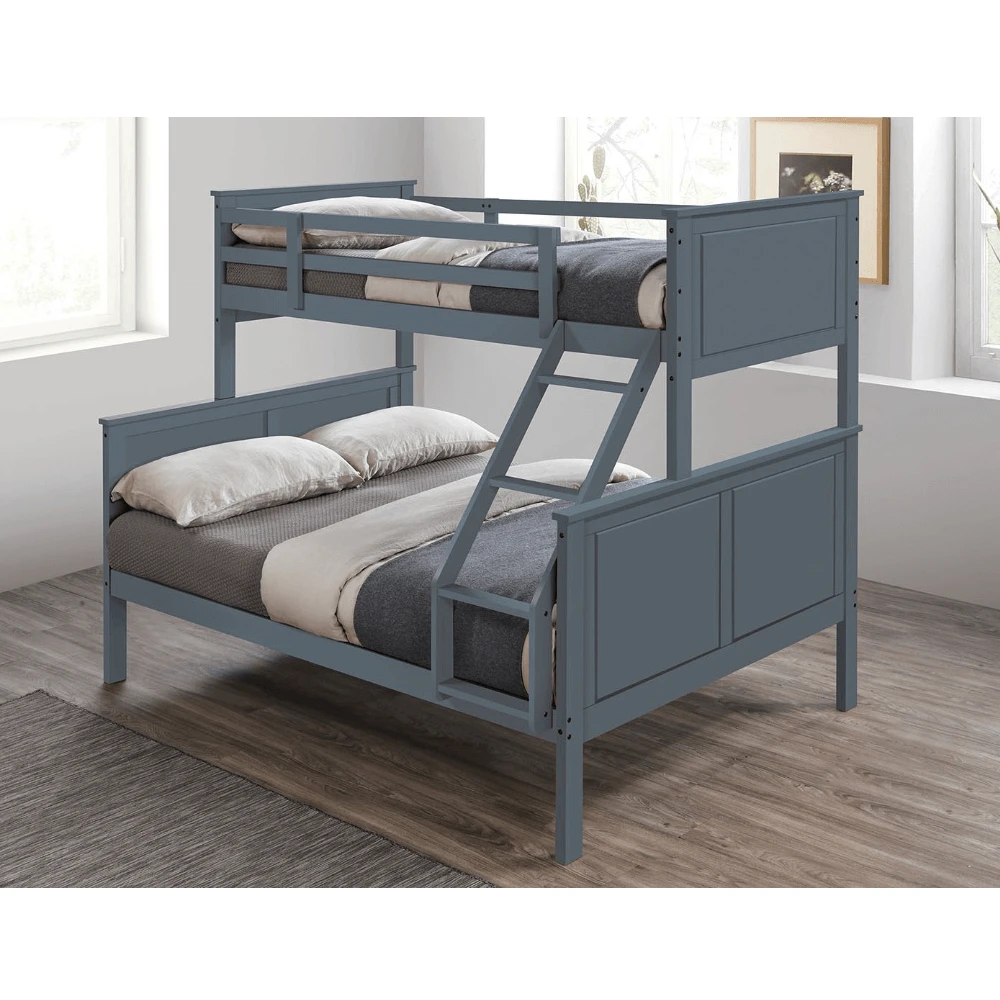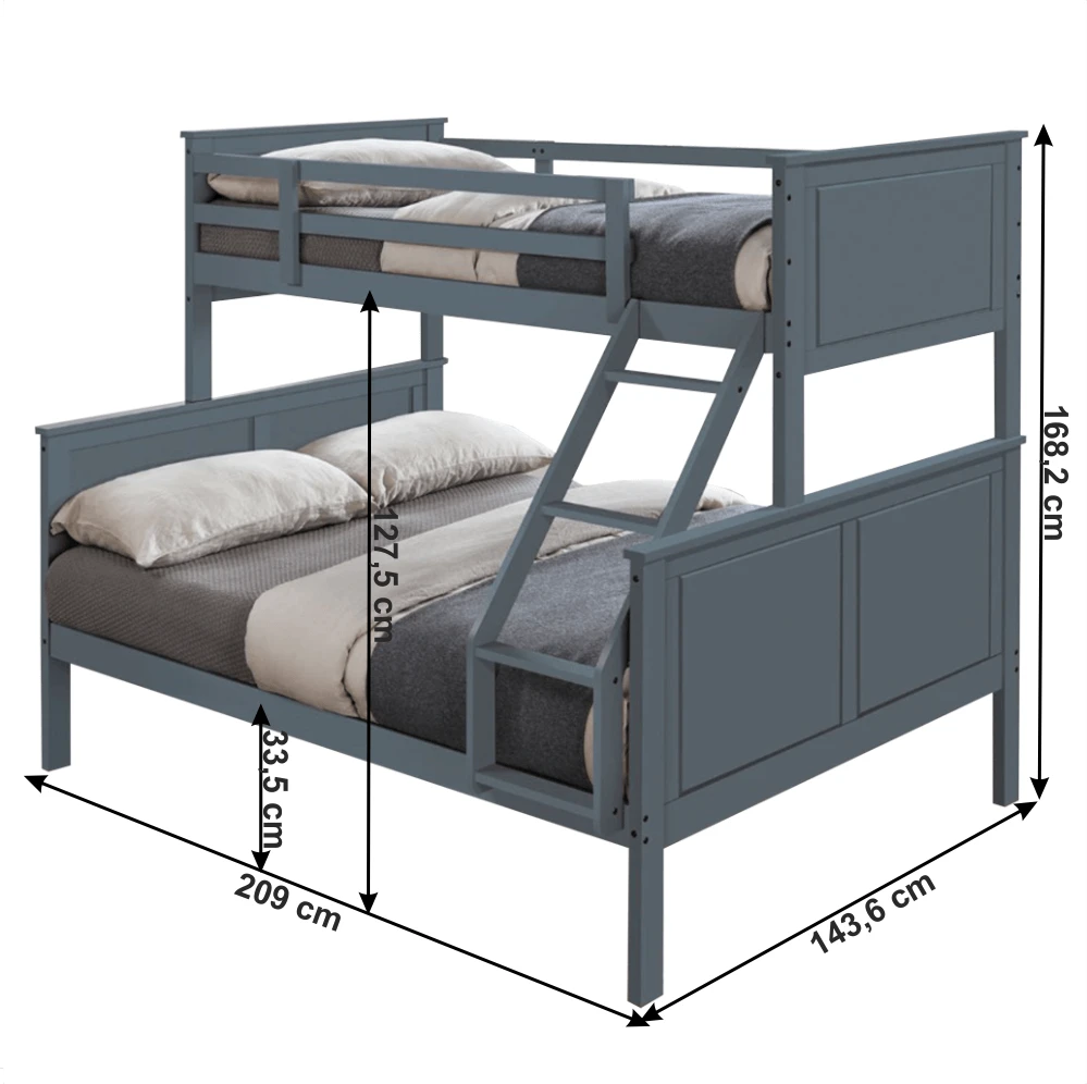 Tato šedá patrová postel z masivu a MDF je ideálním řešením pro rodiny, které hledají kvalitní, bezpečné a prostorově úsporné lůžko. Kombinuje styl, praktičnost a dlouhou životnost – perfektní volba pro každodenní používání.
