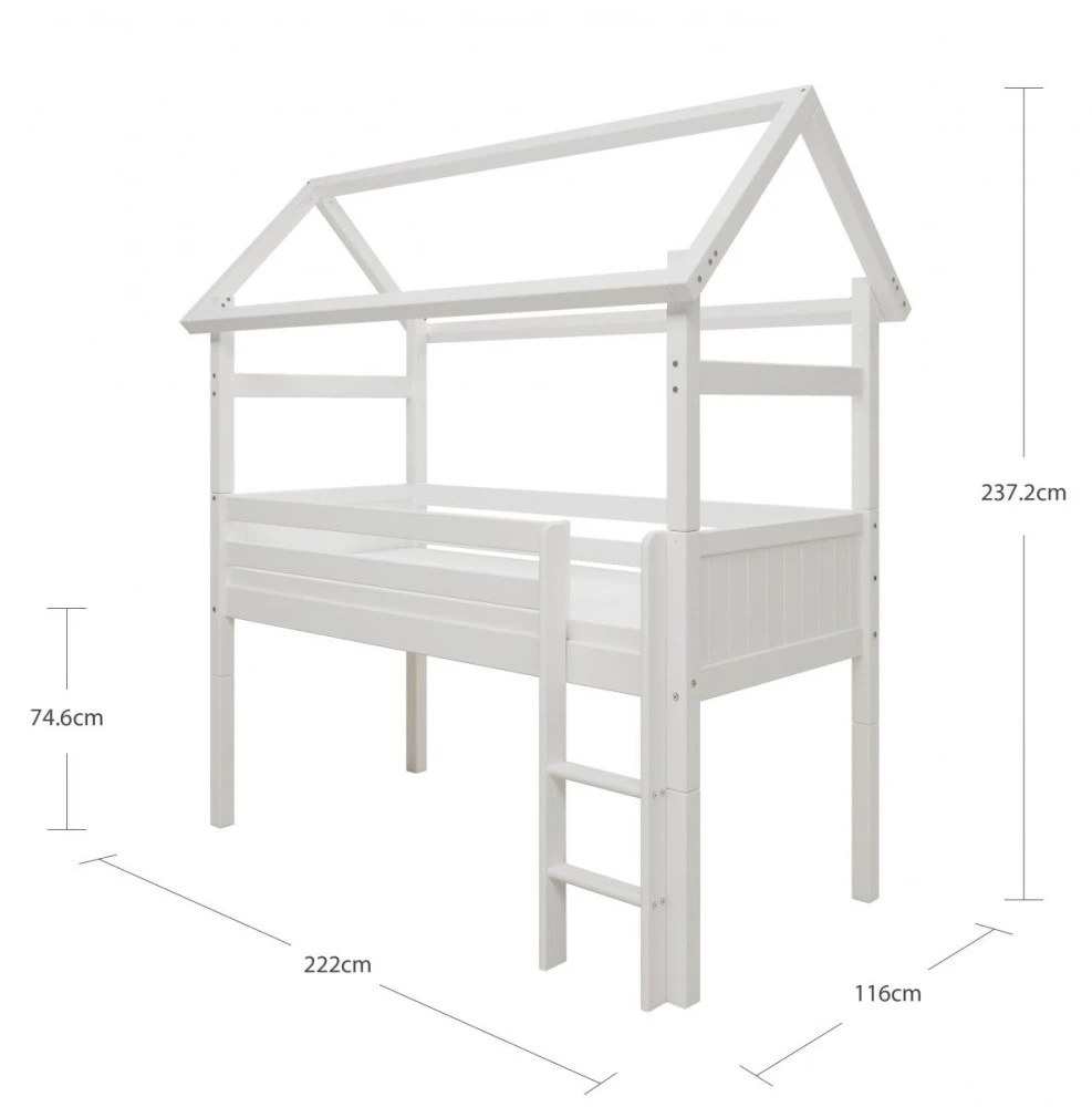 Vyvýšená postel domeček s atraktivními detaily dodá dětskému pokoji okouzlující a hravou atmosféru. Tato postel je dokonalým způsobem, jak vytvořit klidný a zároveň zábavný prostor, díky kterému bude pokoj vašeho dítěte výjimečný. Poskytuje maximální flexibilitu - později lze použít jako klasickou postel.