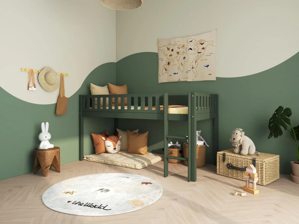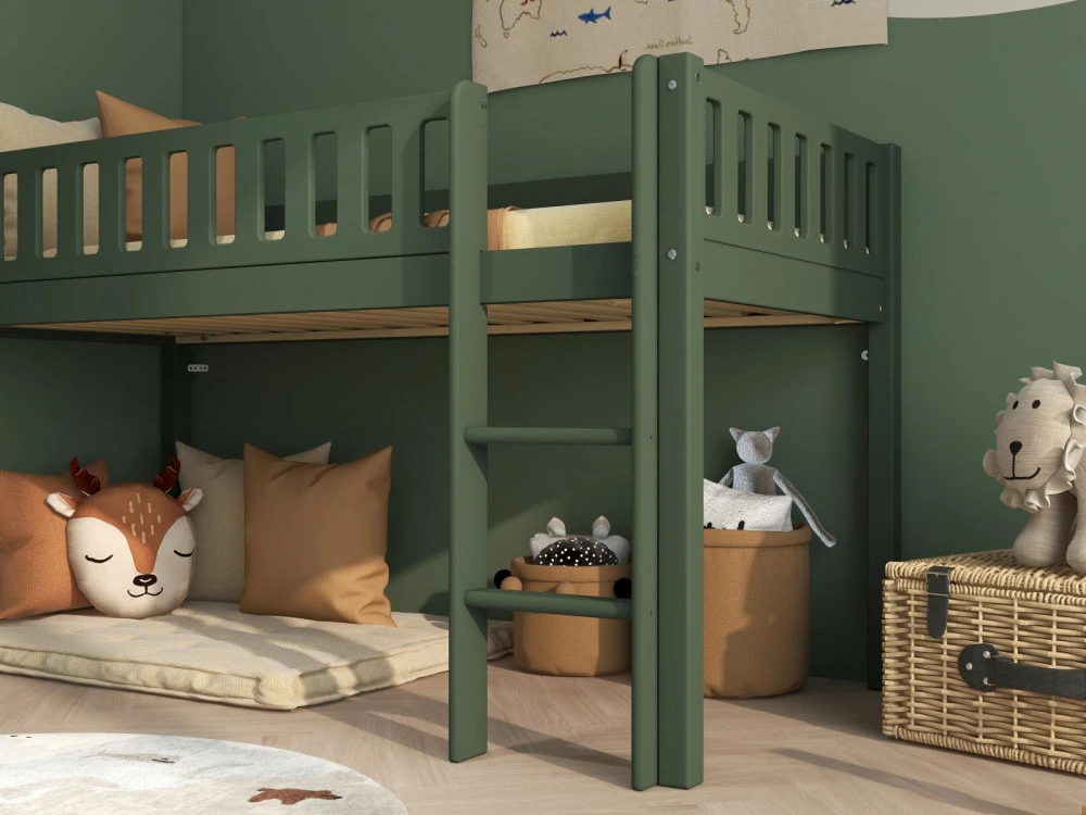 Vyvýšená postel Viggo je dokonalou volbou pro děti, které rády šplhají po žebříku. Praktický a útulný prostor pod postelí vytvoří skvělé místo pro hraní nebo uložení všech nezbytností.
