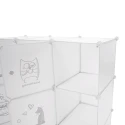 Dětská modulární skříň KITARO v kombinaci bílé barvy, jemné hnědé a hravého dětského vzoru je skvělým řešením pro každý moderní dětský pokoj. Nabízí funkční, lehkou a snadno přizpůsobitelnou konstrukci, která roste spolu s potřebami dítěte. Díky modulárnímu systému si skříň můžete sestavit podle vlastních představ a vytvořit tak přesně takové uspořádání, jaké vašemu dítěti nejlépe vyhovuje.