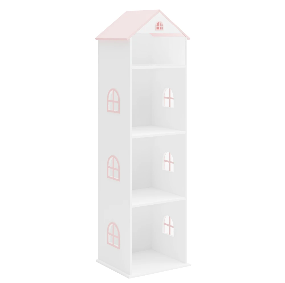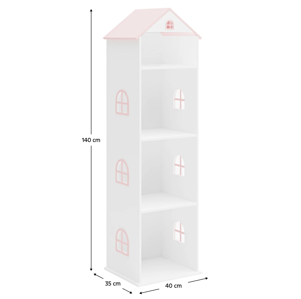 Dětská knihovna MAISON TYP 2 ve tvaru kouzelného domku přinese do pokoje radost, pořádek i hravou atmosféru. Tento originální a praktický doplněk si zamilují děti i rodiče. Spojuje funkčnost s něžným designem, který v kombinaci bílé a růžové barvy krásně ladí s dívčími pokoji i pastelovými interiéry.