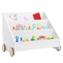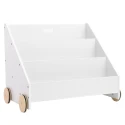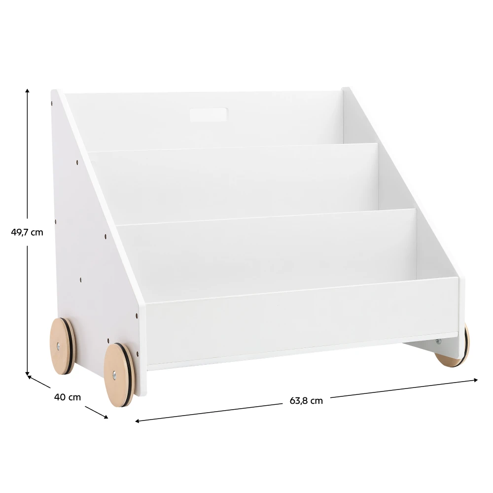 Knihovna je vyrobena z kvalitní MDF a masivního borovicového dřeva. Nabízí tři prostorné police v různých výškách, které pojmou malé knížky, obrázkové publikace i větší dětské příběhy. O hladké a tiché přesouvání po interiéru se starají čtyři tichá kolečka s gumovým povrchem, takže ji děti i dospělí snadno přemístí, kam je zrovna potřeba – do pokojíčku, herny i obýváku.