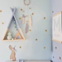 Přestože je polička kompaktní, nabízí dostatek prostoru pro vystavení drobností, dekorací nebo knížek. S nosností 3 kg je ideální právě pro lehčí hračky a doplňky, které dítě používá každý den. Díky závěsnému provedení nezabírá místo na zemi a pomáhá udržovat dětský pokoj vzdušný a přehledný.