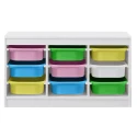 Organizér TRIMAL v kombinaci bílé a veselých barev je skvělým řešením pro každou domácnost, která potřebuje rychle a přehledně uklidit hračky, kreativní pomůcky, školní věci nebo kancelářské drobnosti. Díky modernímu třípatrovému provedení a praktickým boxům v mixu barev (růžová, zelená, žlutá, modrá) vám pomůže udržet pořádek i ve velmi živém prostředí dětského pokoje.