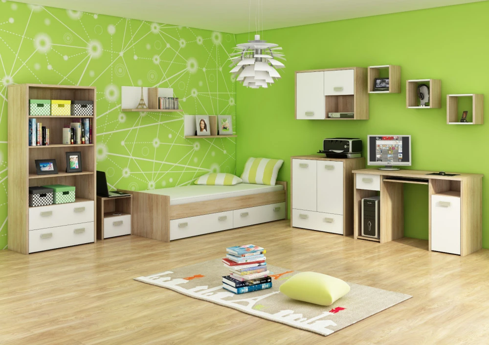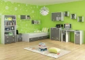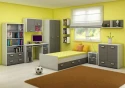 Designový regál ze systémového nábytku do studentského pokoje Kitty je vyroben z velmi kvalitních lamino materiálů s ABS hranou 0,6 mm. Madla zásuvek jsou vyrobená z kvalitního tvrzeného plastu. Korpusy maji sílu 25 mm a zaručí tak stabilitu a pevnost nábytku. Ostatní části jsou z 16 mm silného lamina. Zásuvky jsou opatřené kovovými pojezdy.
