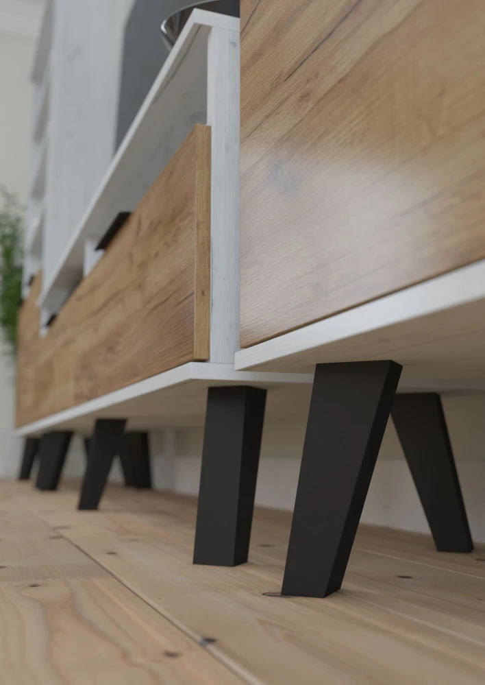 Pokud potřebujete funkční, moderní a zároveň elegantní nábytek, který je propracovaný a snadno se udržuje, tak se systémem SVEN nešlápnete vedle! Celá kolekce nábytku Sven vyniká elegantním designem, vysokou funkčností a čistými liniemi. "Strohost" v designu skvěle, spolu s jemnými přírodními dekory v kombinaci s bílou či nadčasovou černobílou klasikou, navodí pocit vzdušného a velkého interiéru. Lamino materiál o síle 16 mm doplňují ABS hrany, které chrání nábytek proti mechanickému poškození. Skříňky i zásuvky s tichým dovíráním zvýší komfort užívání.Výrazným prvkem jsou černé 18 cm vysoké dřevěné nožky, které dodají celé kolekci originální vzhled. A nejen to, vysoké nožky jsou také praktické při uklízení. Černou barvu mají i úchyty, jež doplňují barevné kombinace reflektující moderní trendy v bydlení. Vybavte si svůj obývák kolekcí SVEN!