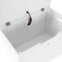 Úložný box na hračky BOLIS – bílý víceúčelový box z masivu a MDF s bezpečným sklopným víkem