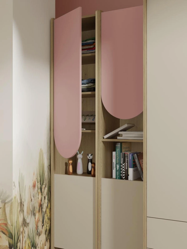 Nábytek je navržen tak, aby efektivně využil dostupný prostor a zároveň poskytl dostatek úložných možností pro každodenní potřeby. Pomůže vám udržet pořádek v hračkách, oblečení i školních pomůckách, a vytvoří tak přehledné a harmonické prostředí.