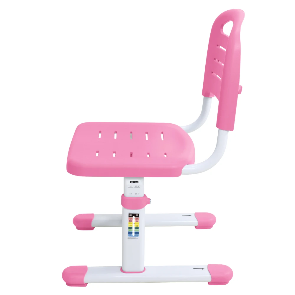 Součástí setu je výškově nastavitelná židle, kterou lze přizpůsobit výšce dítěte. Ergonomicky tvarované sedátko i opěradlo zajišťují pohodlí i při delším sezení.