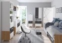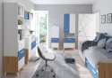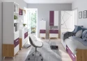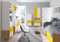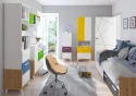 Barevná škála sází na jednoduché spojení bílé barvy a teplého dřevodekoru dub artisan. K této kombinaci si můžete zvolit čílka z 5 barev, takže můžete mít pokoj pro princeznu, námořníka ale i studenta, který barvám neholduje.