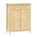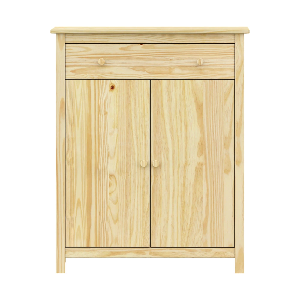 materiál masiv borovice, lakované provedení 1 zásuvka s kovovými pojezdy, 2 plné dveře, 1 police maximální nosnosti uvedeny v návodu k montáži