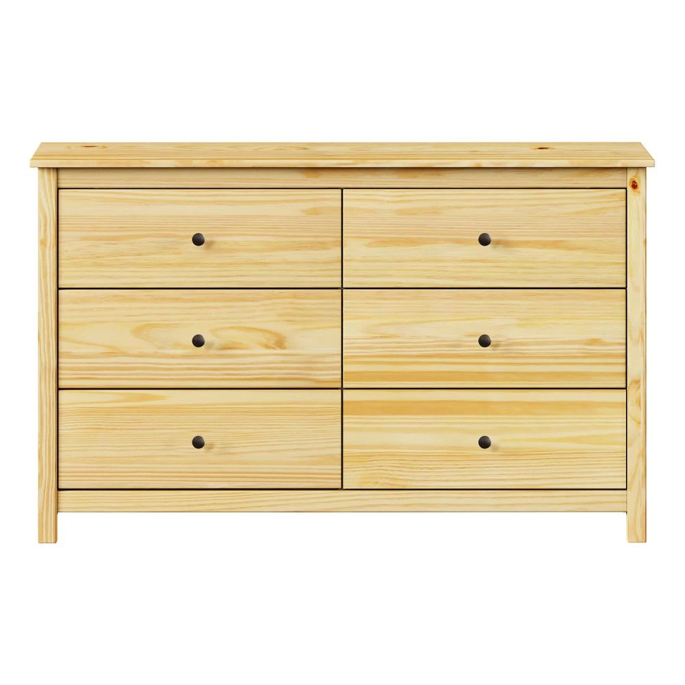 materiál masiv borovice, lakované provedení kovové úchytky šest zásuvek s kovovými pojezdy