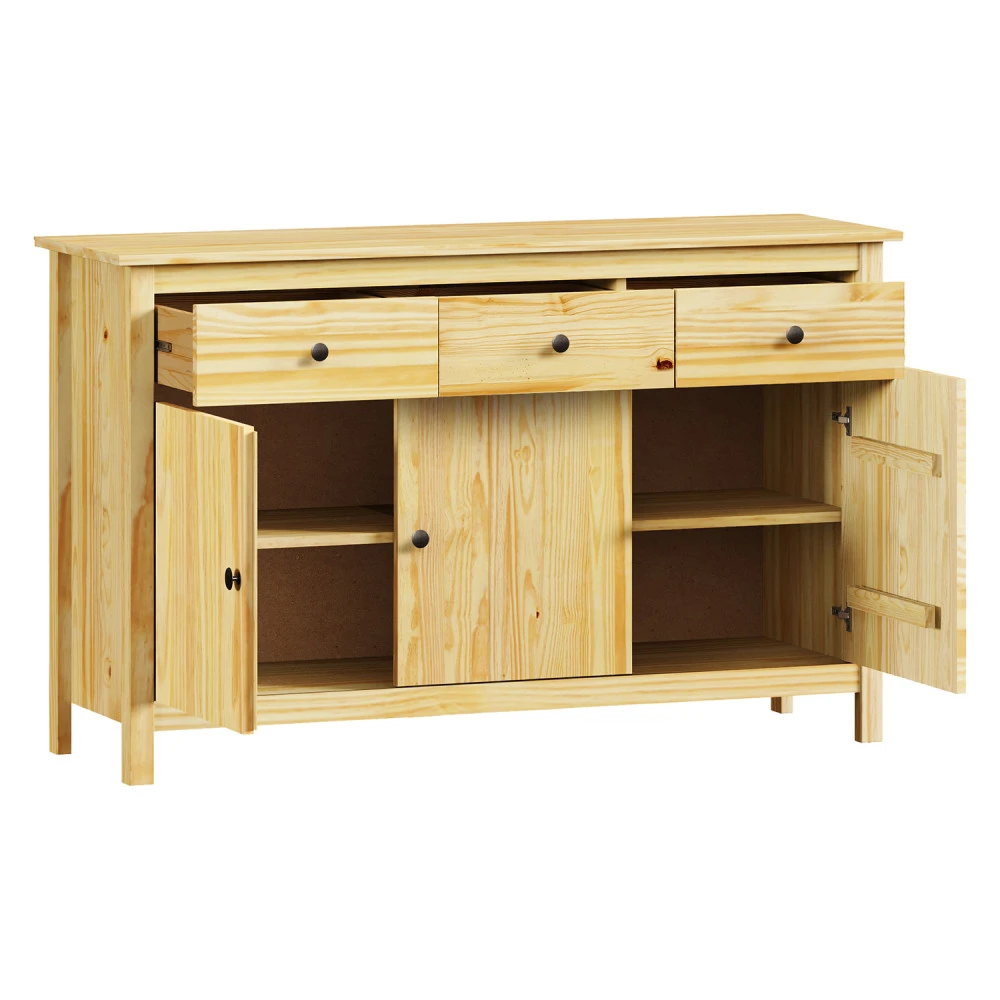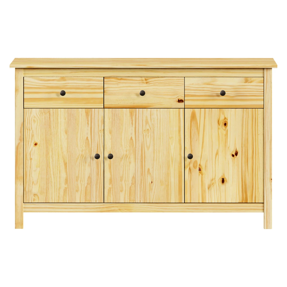materiál masiv borovice, lakované provedení kovové úchytky 3 dveře, 3 zásuvky s kovovými pojezdy vhodný doplněk nástavec TORINO 8063K