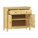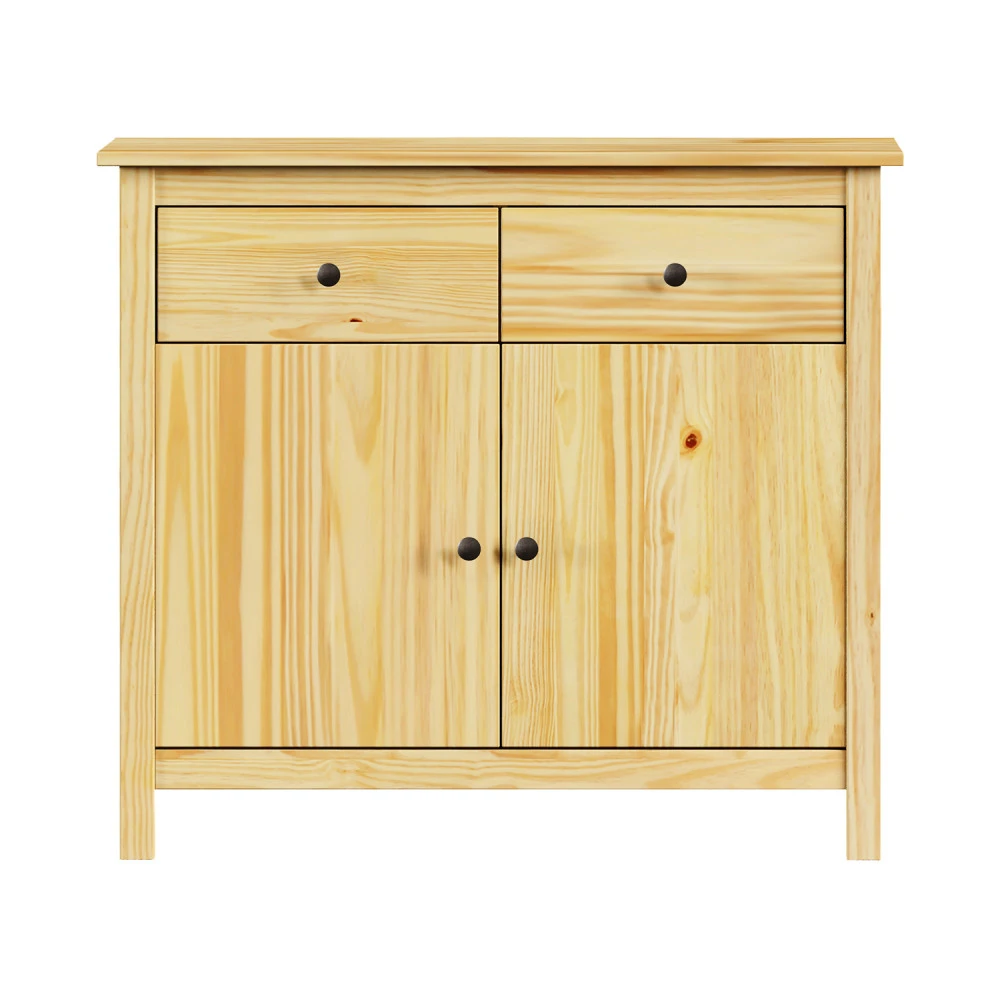 materiál masiv borovice, lakované provedení kovové úchytky 2 zásuvky s kovovými pojezdy, 2 plné dveře, 1 police vhodný doplněk nástavec 8096K