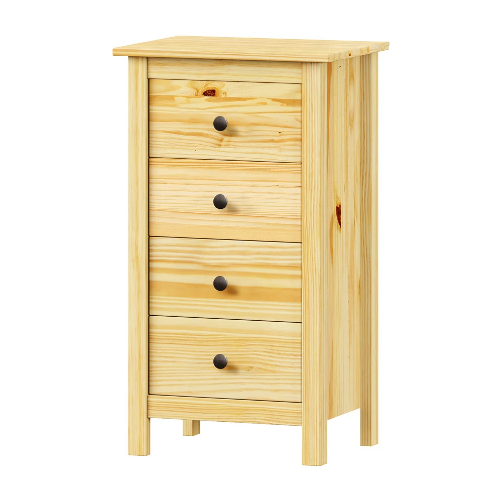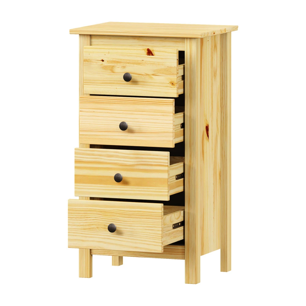materiál masiv borovice, lakované provedení kovové úchytky 4 zásuvky s kovovými pojezdy